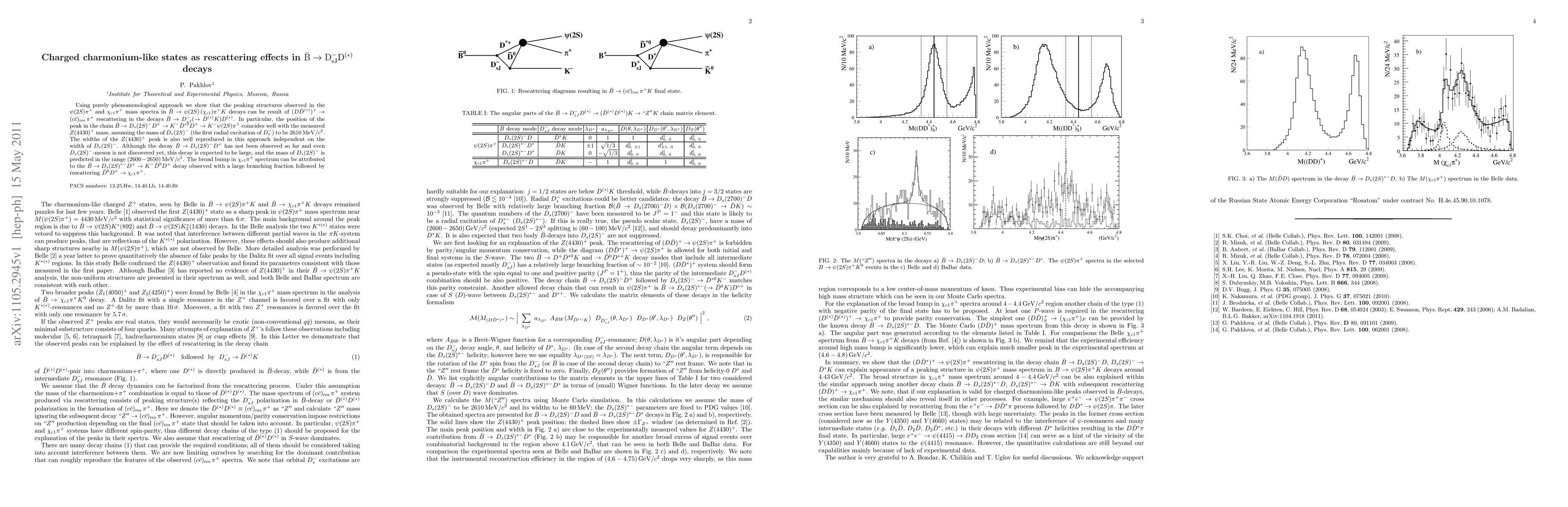 Using purely phenomenological approach we show that the peaking structures observed in the psi(2S) pi+ and chi_c1 pi+ mass spectra in B -> psi(2S)(chi_c1) pi+ K decays can be result of (D \bar{D}^(*))+ -> (ccbar)_res pi+ rescattering in the decays B -> D_sJ (-> \bar{D}(*) K) D(*). In particular, the position of the peak in the chain B -> D_s(2S) D+ -> K- \bar{D}*0 D+ -> K- psi(2S) pi+ coincides well with the measured Z(4430) mass, assuming the mass of D_s(2S) (the first radial excitation of D_s) to be 2610 MeV/c2. The widths of the Z(4430) peak is also well reproduced in this approach independent on the width of D_s(2S). Although the decay B -> D_s(2S) D+ has not been observed so far and even D_s(2S)-meson is not discovered yet, this decay is expected to be large, and the mass of D_s(2S) is predicted in the range (2600-2650)MeV/c2. The broad bump in chi_c1 pi+ spectrum can be attributed to the B -> D_s*(2S) D+ -> K- \bar{D}0 D+ decay observed with a large branching fraction followed by rescattering \bar{D}0 D^+ -> chi_c1 pi+.