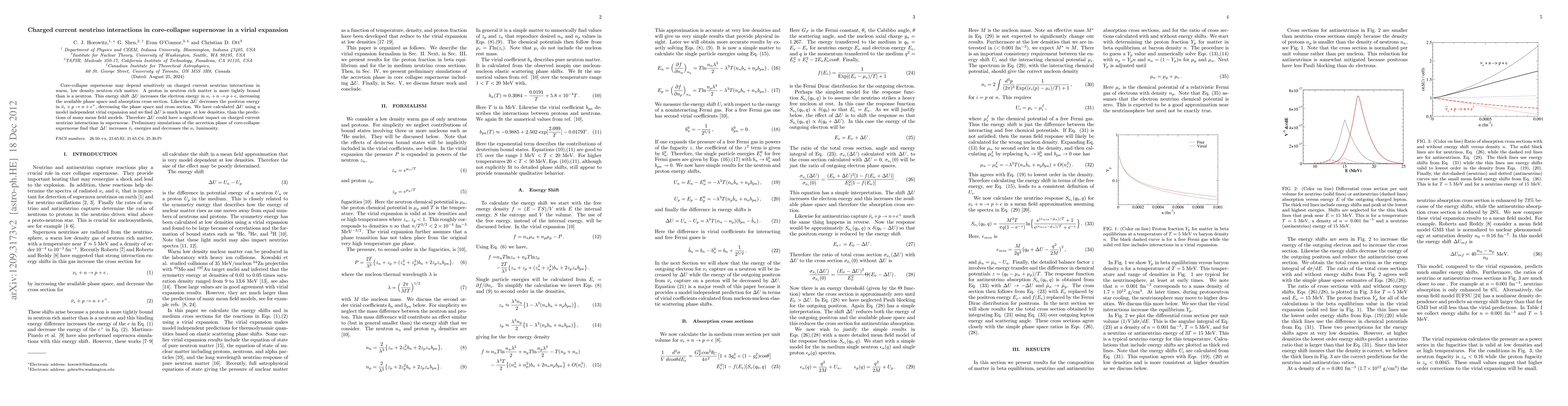 This paper investigates charged current neutrino interactions in core-collapse supernovae using a virial expansion model, finding that the energy shift ΔU significantly alters the absorption cross section and phase space for neutrino interactions. Preliminary simulations suggest ΔU increases antineutrino energies and reduces electron neutrino luminosity, potentially impacting the supernova dynamics.