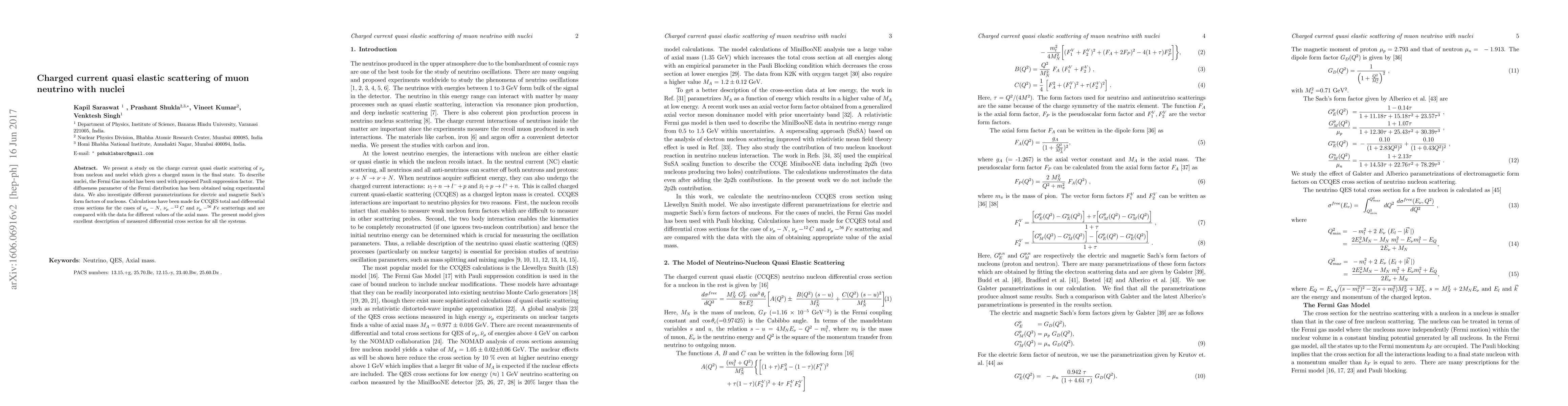 We present a study on the charge current quasi elastic scattering of $\nu_\mu$ from nucleon and nuclei which gives a charged muon in the final state. To describe nuclei, the Fermi Gas model has been used with proposed Pauli suppression factor. The diffuseness parameter of the Fermi distribution has been obtained using experimental data. We also investigate different parametrizations for electric and magnetic Sach's form factors of nucleons. Calculations have been made for CCQES total and differential cross sections for the cases of $\nu_{\mu}-N$, $\nu_{\mu}-^{12}C$ and $\nu_{\mu}-^{56}Fe$ scatterings and are compared with the data for different values of the axial mass. The present model gives excellent description of measured differential cross section for all the systems.