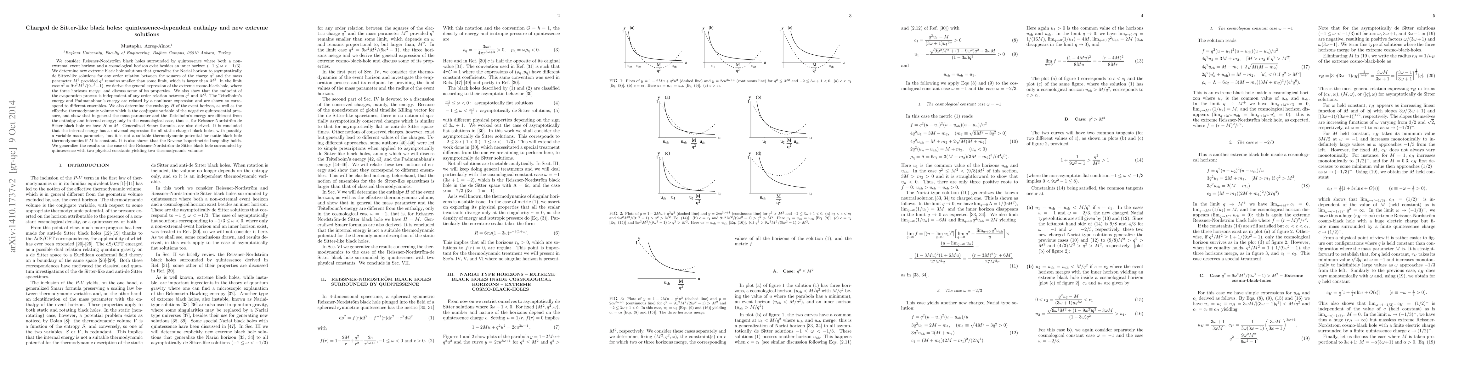 This paper explores Reissner-Nordström black holes with quintessence, deriving new extreme solutions where horizons merge, and examines thermodynamic properties including enthalpy and effective volume. It concludes that the internal energy has a universal expression but is not a suitable thermodynamic potential for static black holes.