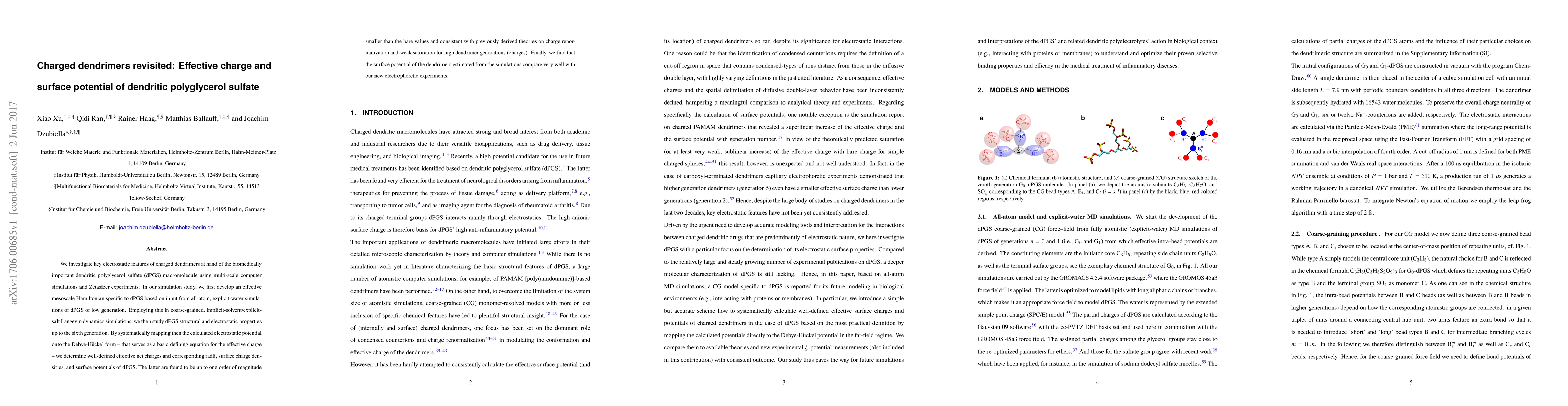 We investigate key electrostatic features of charged dendrimers at hand of the biomedically important dendritic polyglycerol sulfate (dPGS) macromolecule using multi-scale computer simulations and Zetasizer experiments. In our simulation study, we first develop an effective mesoscale Hamiltonian specific to dPGS based on input from all-atom, explicit-water simulations of dPGS of low generation. Employing this in coarse-grained, implicit-solvent/explicit-salt Langevin dynamics simulations, we then study dPGS structural and electrostatic properties up to the sixth generation. By systematically mapping then the calculated electrostatic potential onto the Debye-H\"uckel form -- that serves as a basic defining equation for the effective charge -- we determine well-defined effective net charges and corresponding radii, surface charge densities, and surface potentials of dPGS. The latter are found to be up to one order of magnitude smaller than the bare values and consistent with previously derived theories on charge renormalization and weak saturation for high dendrimer generations (charges). Finally, we find that the surface potential of the dendrimers estimated from the simulations compare very well with our new electrophoretic experiments.