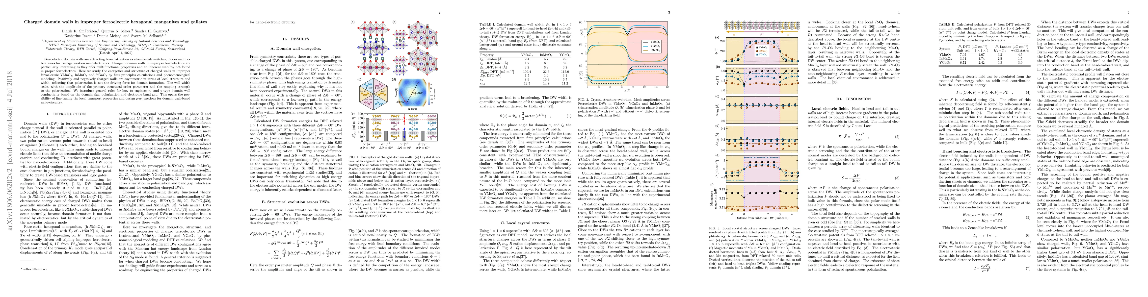This paper investigates charged domain walls in improper ferroelectric hexagonal manganites and gallates, using first principles calculations and phenomenological modeling. The study reveals that charged domain walls in these materials exhibit unique structural asymmetries and can be engineered for n- and p-type conductivities, paving the way for advanced domain wall-based nano-circuits.
