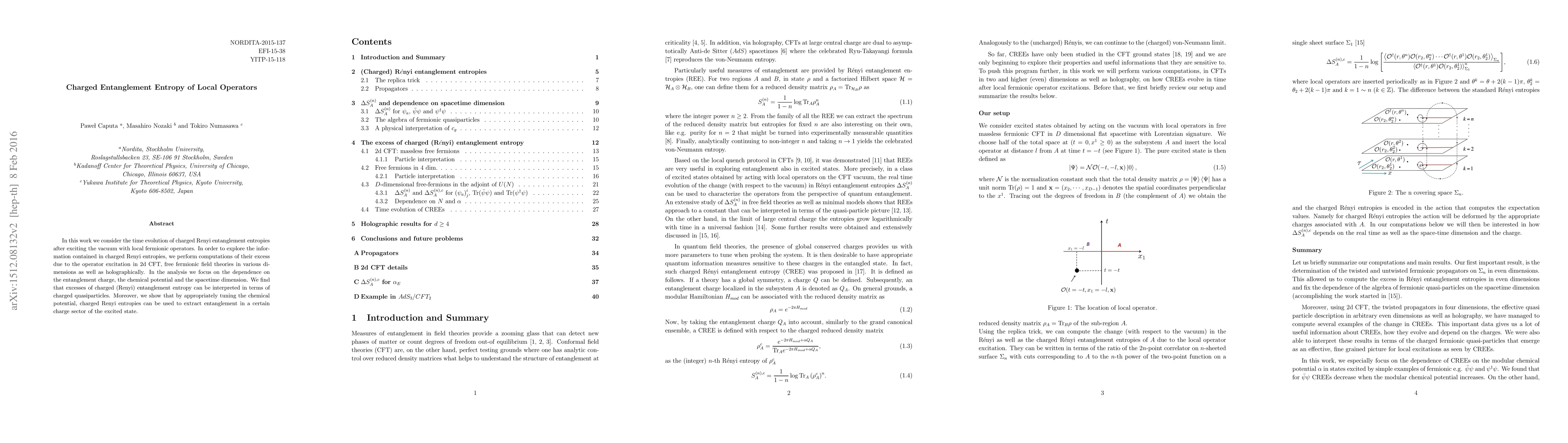 In this work we consider the time evolution of charged Renyi entanglement entropies after exciting the vacuum with local fermionic operators. In order to explore the information contained in charged Renyi entropies, we perform computations of their excess due to the operator excitation in 2d CFT, free fermionic field theories in various dimensions as well as holographically. In the analysis we focus on the dependence on the entanglement charge, the chemical potential and the spacetime dimension. We find that excesses of charged (Renyi) entanglement entropy can be interpreted in terms of charged quasiparticles. Moreover, we show that by appropriately tuning the chemical potential charged Renyi entropies can be used to extract entanglement in a certain charge sector of the excited state.