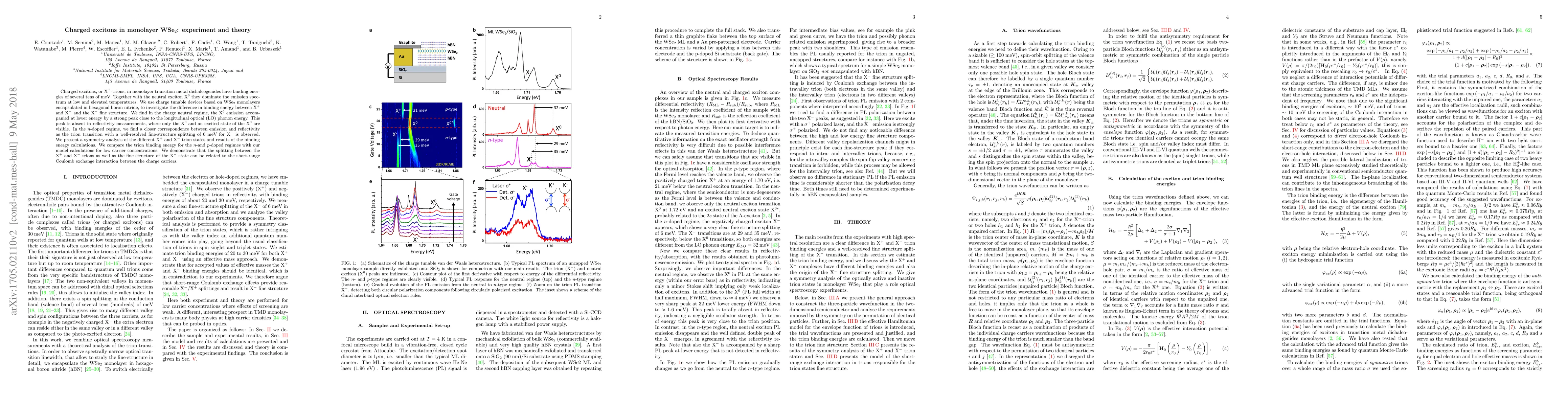 Researchers investigate charged excitons in monolayer WSe2, finding a difference in binding energy between X+ and X- trions and the fine structure of X-, which can be explained by Coulomb exchange interaction.