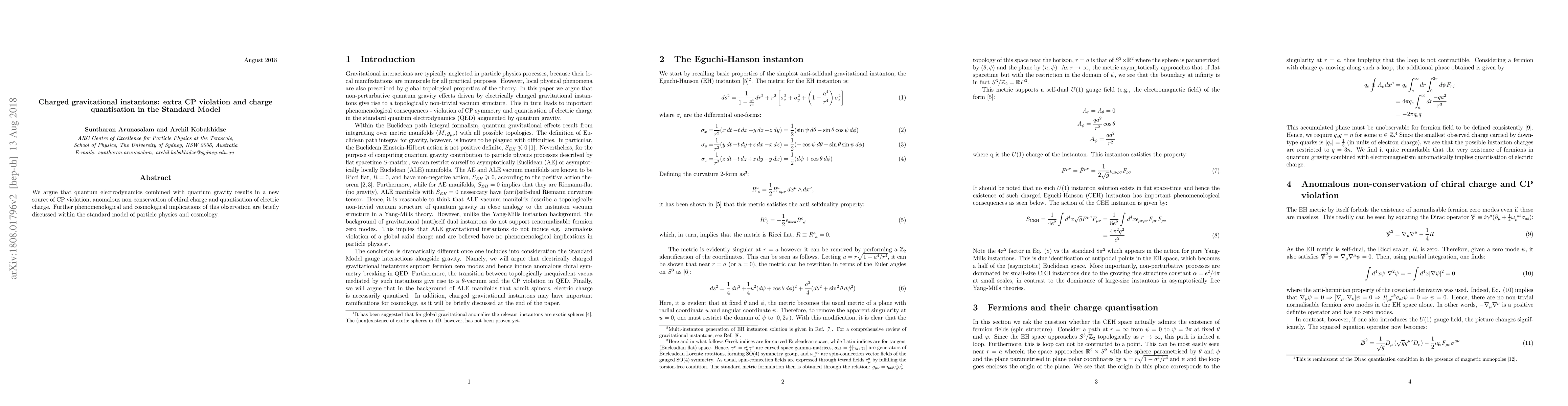 The discovery of charged Eguchi-Hanson instantons as sources of CP-violating effects in QED.