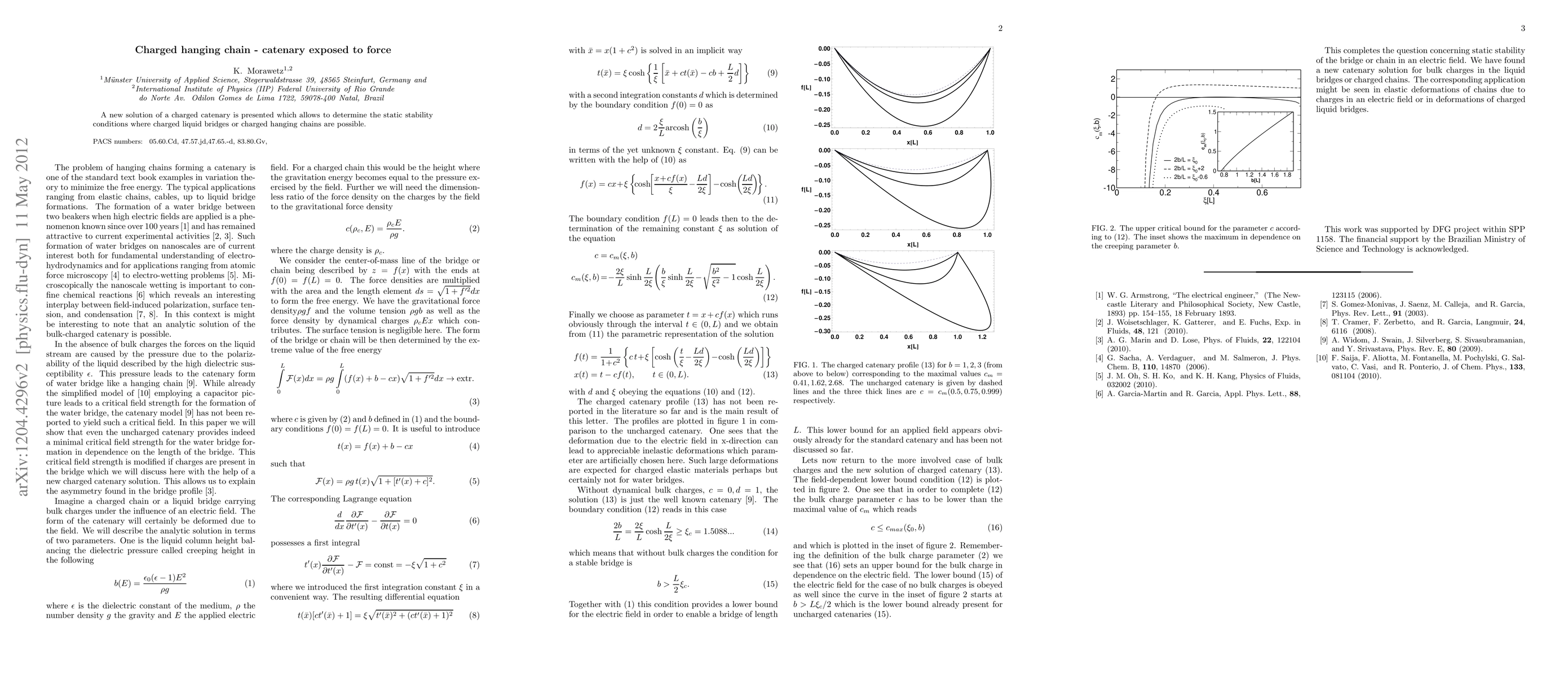 A new solution of a charged catenary is presented which allows to determine the static stability conditions where charged liquid bridges or charged hanging robes are possible.