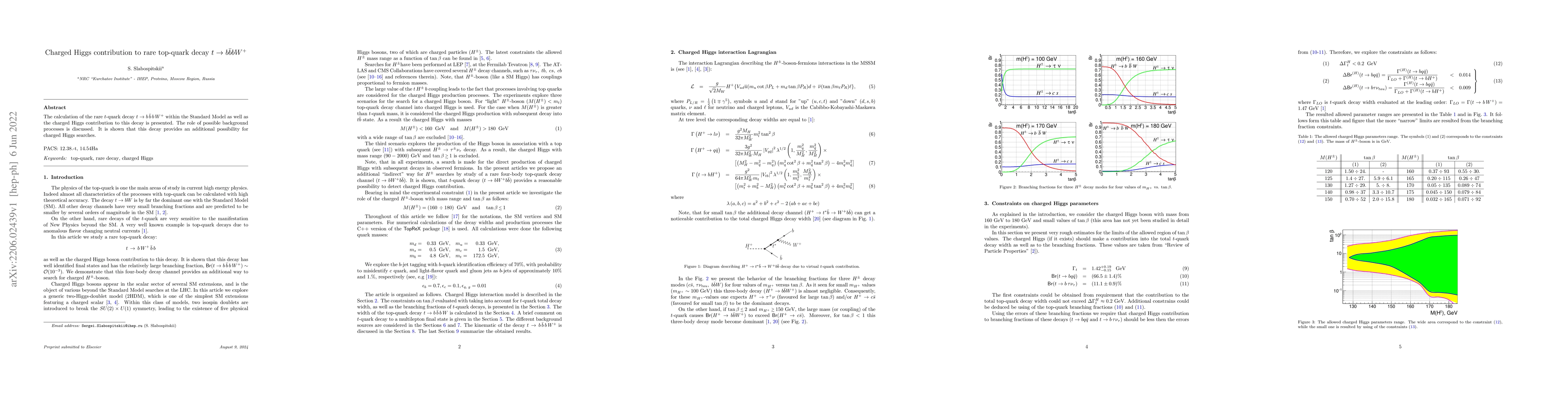 The calculation of the rare $t$-quark decay $t \to b W b \bar{b}$ within the Standard Model as well as the charged Higgs contribution to this decay is presented. The role of possible background processes is discussed. It is shown that this decay provides an additional possibility for charged Higgs searches.