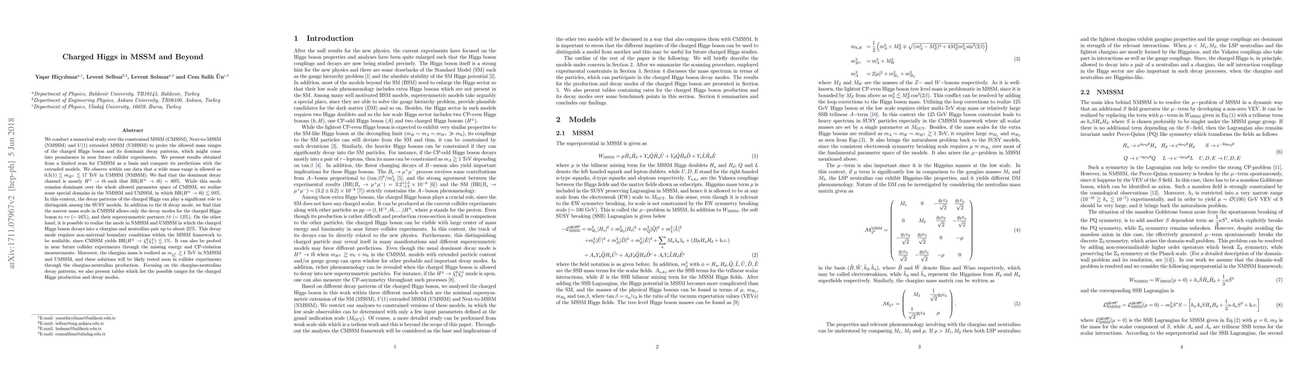 This paper investigates the mass ranges and decay patterns of the charged Higgs boson in constrained MSSM (CMSSM), Next-to-MSSM (NMSSM), and $U(1)$ extended MSSM (UMSSM). It finds that the dominant decay mode is $H^{\pm}\rightarrow tb$ with a branching ratio of around 80%, but special regions in NMSSM and UMSSM allow for significantly lower branching ratios. The study highlights the potential of decay patterns to distinguish between SUSY models and suggests that future collider experiments could probe these modes through missing energy and CP-violation measurements.