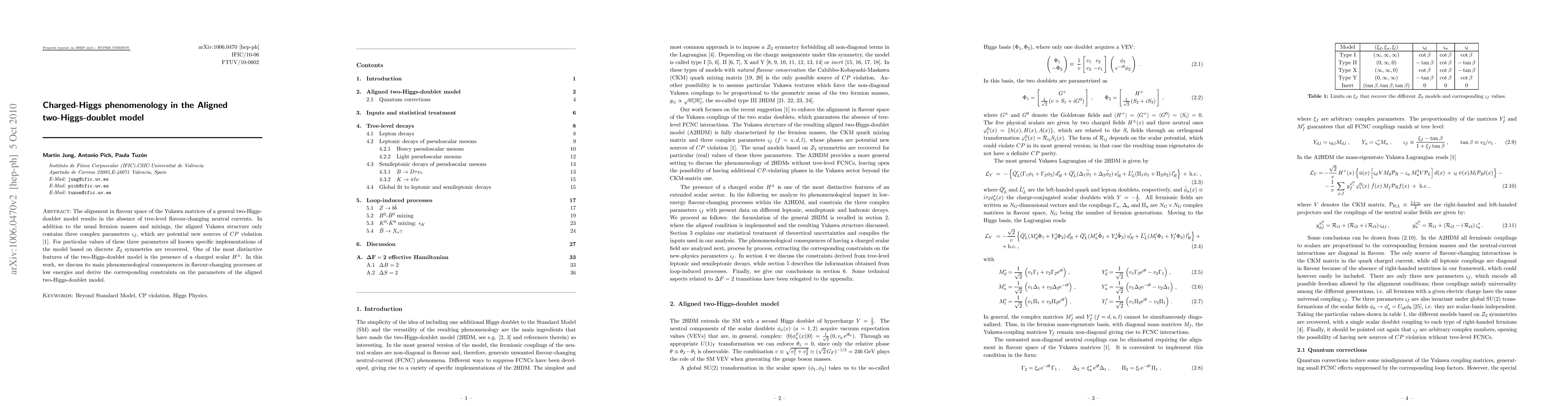 This paper explores the charged-Higgs phenomenology in the Aligned two-Higgs-doublet model, focusing on the absence of tree-level flavour-changing neutral currents and the implications for CP violation. It derives constraints on model parameters from low-energy flavour-changing processes.