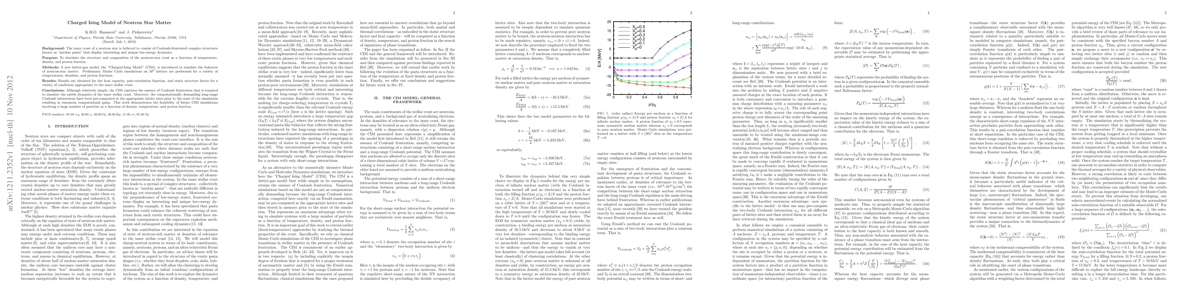 Background: The inner crust of a neutron star is believed to consist of Coulomb-frustrated complex structures known as "nuclear pasta" that display interesting and unique low-energy dynamics. Purpose: To elucidate the structure and composition of the neutron-star crust as a function of temperature, density, and proton fraction. Methods: A new lattice-gas model, the "Charged-Ising Model" (CIM), is introduced to simulate the behavior of neutron-star matter. Preliminary Monte Carlo simulations on 30^3 lattices are performed for a variety of temperatures, densities, and proton fractions. Results: Results are obtained for the heat capacity, pair-correlation function, and static structure factor for a variety of conditions appropriate to the inner stellar crust. Conclusions: Although relatively simple, the CIM captures the essence of Coulomb frustration that is required to simulate the subtle dynamics of the inner stellar crust. Moreover, the computationally demanding long-range Coulomb interactions have been pre-computed at the appropriate lattice sites prior to the start of the simulation resulting in enormous computational gains. This work demonstrates the feasibility of future CIM simulations involving a large number of particles as a function of density, temperature, and proton fraction.