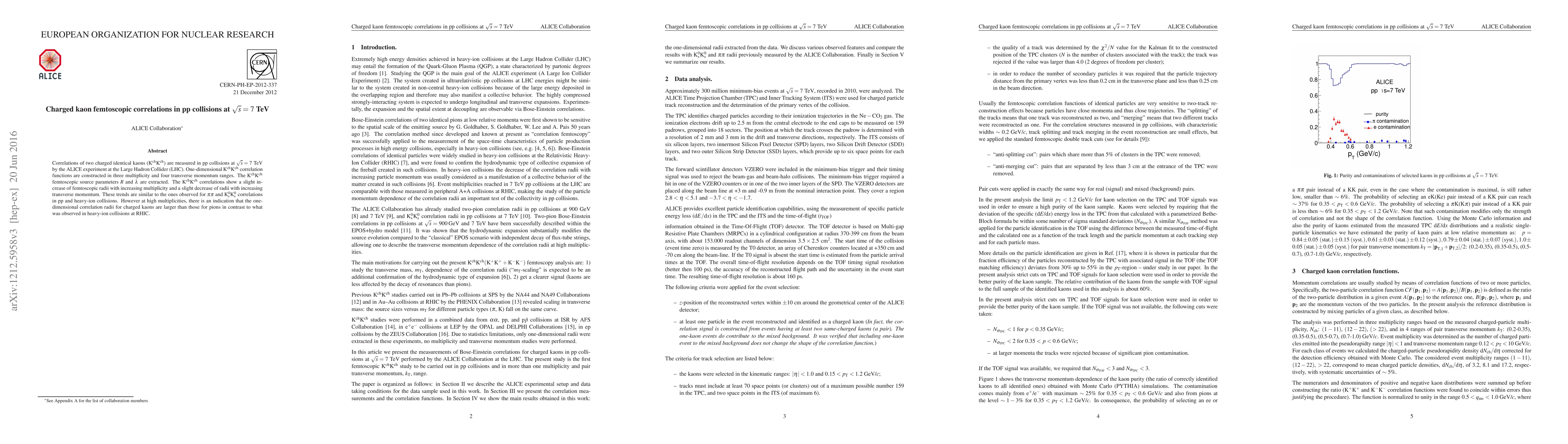 This paper reports on the measurement of charged kaon femtoscopic correlations in proton-proton collisions at 7 TeV, revealing trends in correlation radii that align with pion and kaon pair observations but show an exception at high multiplicities compared to heavy-ion collisions.