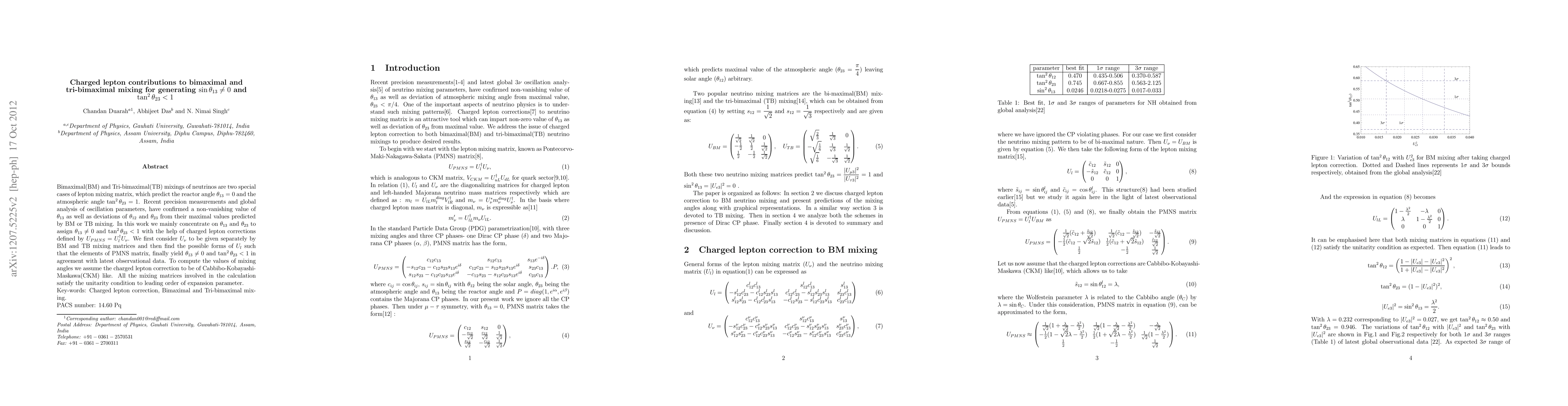 This paper investigates charged lepton contributions to bimaximal and tri-bimaximal neutrino mixings to generate non-zero $\sin\theta_{13}$ and $\tan^2\theta_{23}<1$. It uses CKM-like corrections to modify the PMNS matrix, ensuring the unitarity condition and analyzing the impact on the Dirac CP phase.