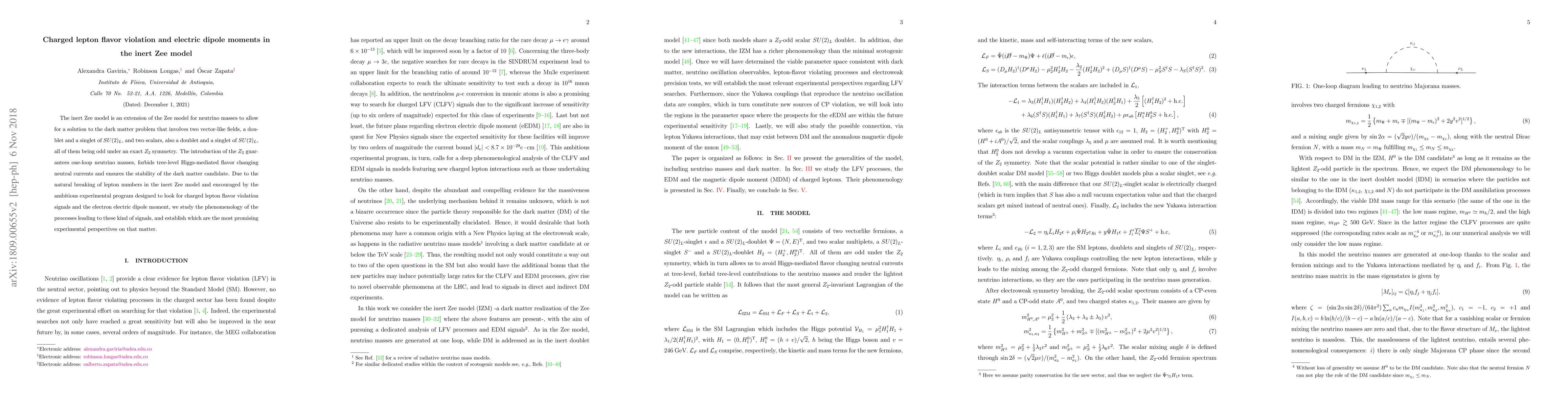 This paper explores the charged lepton flavor violation and electric dipole moments in the inert Zee model, which extends the Zee model to solve the dark matter problem and naturally breaks lepton numbers. The study identifies the most promising experimental avenues for detecting these phenomena.