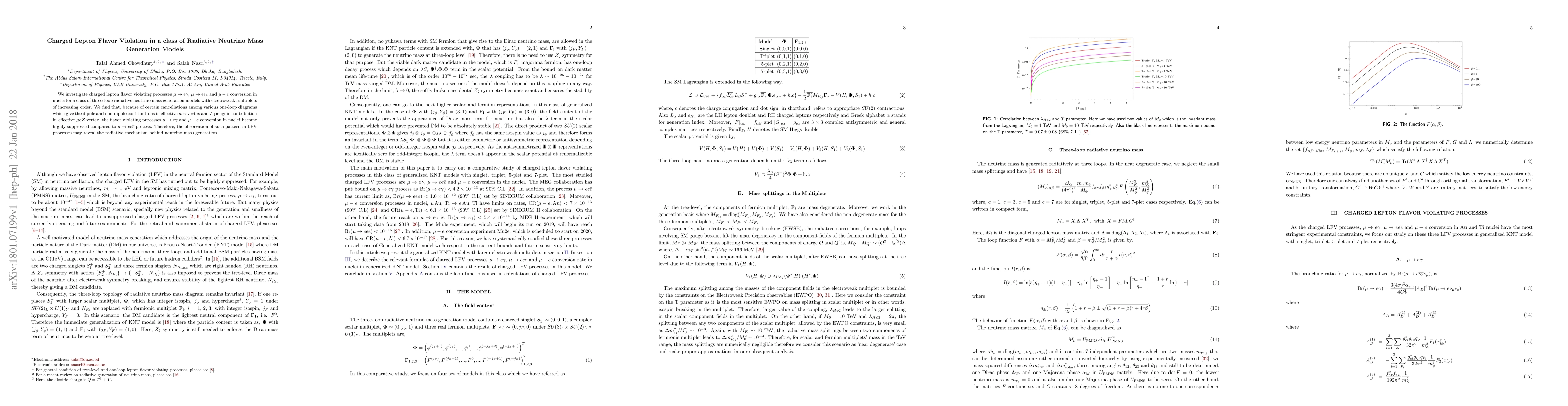 We investigate charged lepton flavor violating processes $\mu\rightarrow e \gamma$, $\mu\rightarrow e e \overline{e}$ and $\mu-e$ conversion in nuclei for a class of three-loop radiative neutrino mass generation models with electroweak multiplets of increasing order. We find that, because of certain cancellations among various one-loop diagrams which give the dipole and non-dipole contributions in effective $\mu e \gamma$ vertex and Z-penguin contribution in effective $\mu e Z$ vertex, the flavor violating processes $\mu\rightarrow e\gamma$ and $\mu-e$ conversion in nuclei become highly suppressed compared to $\mu\rightarrow e e \overline{e}$ process. Therefore, the observation of such pattern in LFV processes may reveal the radiative mechanism behind neutrino mass generation.
