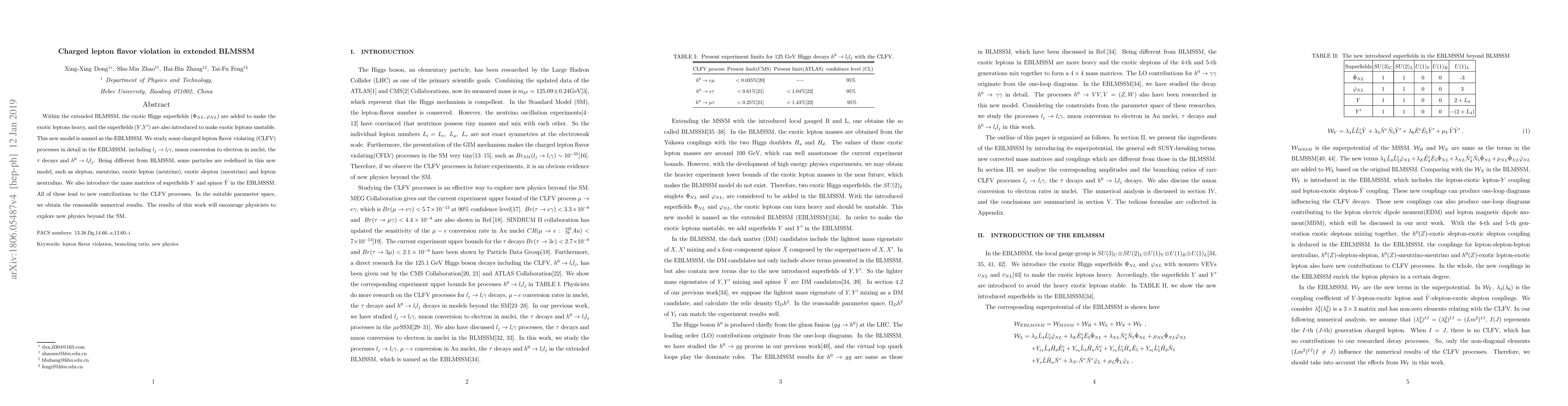 This paper explores charged lepton flavor violation (CLFV) in the extended BLMSSM (EBLMSSM), which incorporates new exotic Higgs superfields and introduces unstable exotic leptons. It studies CLFV processes such as $l_j\rightarrow l_i \gamma$ and $h^0\rightarrow l_i l_j$, finding reasonable numerical results that suggest new physics beyond the Standard Model.