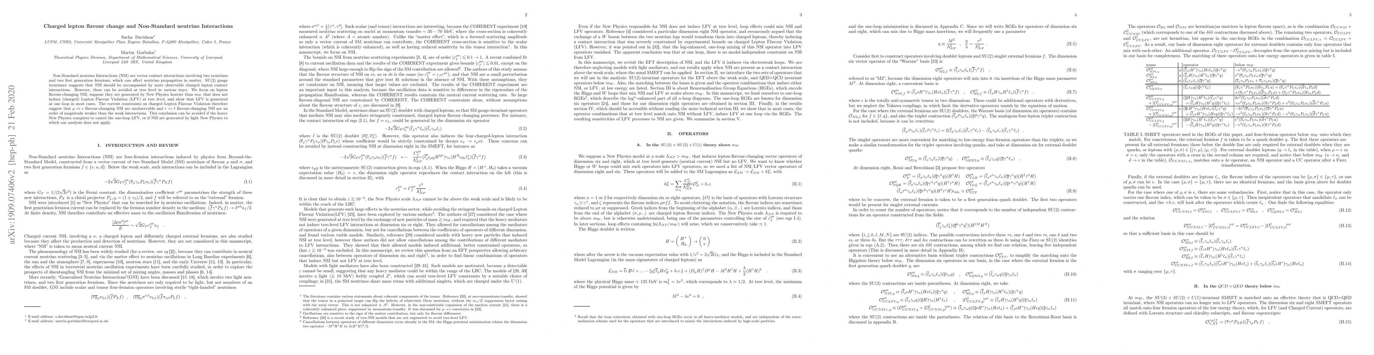 This paper investigates Non-Standard neutrino Interactions (NSI) and their potential connection to charged lepton flavour change, demonstrating that while NSI may exist, they are likely too weak to be observed due to constraints on charged Lepton Flavour Violation (LFV). The study concludes that unless specific cancellations occur in New Physics, NSI involving muons and electrons are unobservable, and those involving taus are significantly weaker than standard weak interactions.
