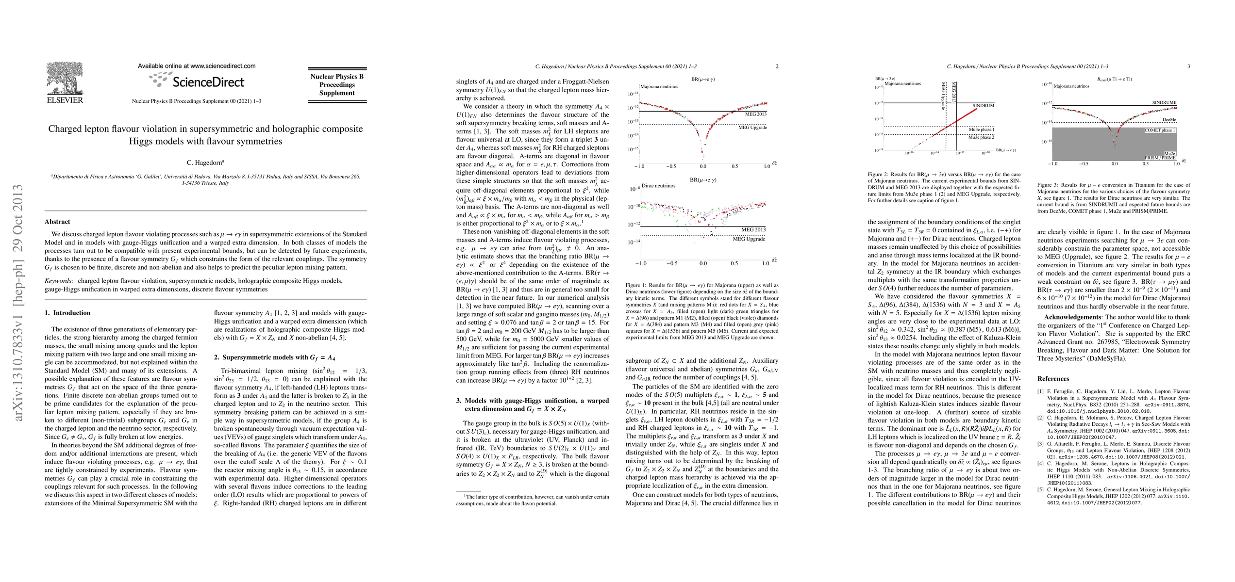 This paper explores charged lepton flavour violation (CLFV) in supersymmetric and holographic composite Higgs models, focusing on the process μ → eγ. It finds that CLFV processes are consistent with current experimental limits but could be detected by future experiments, thanks to a non-abelian flavour symmetry G_f that constrains relevant couplings and predicts a unique lepton mixing pattern.