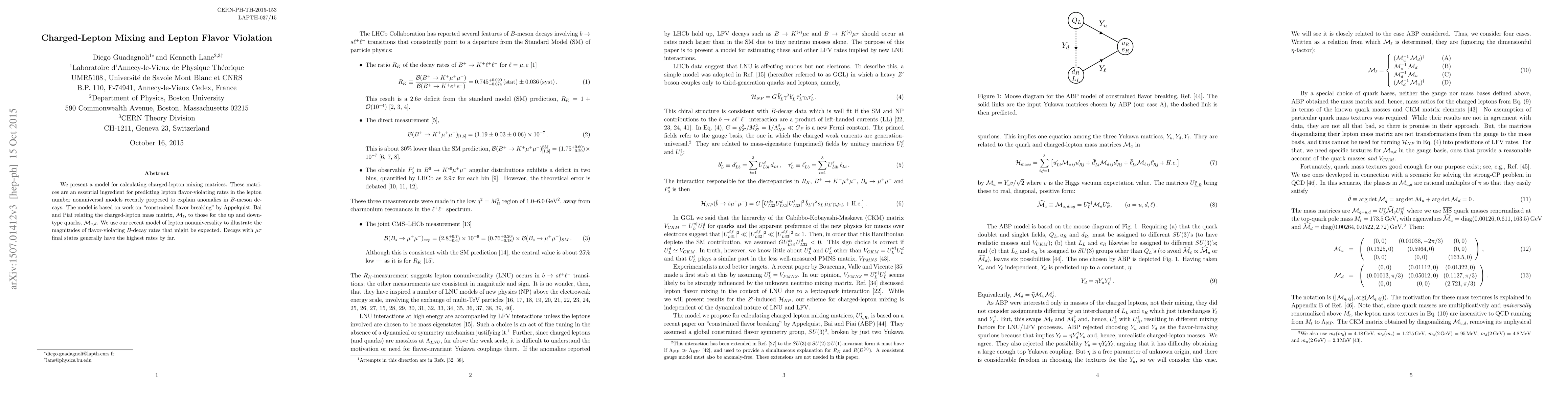 This research develops a model for charged-lepton mixing matrices, crucial for predicting lepton flavor-violating rates in nonuniversal lepton number models. It uses "constrained flavor breaking" to relate charged-lepton mass matrices to quark mass matrices, showing that tau-muon decays have the highest expected rates.