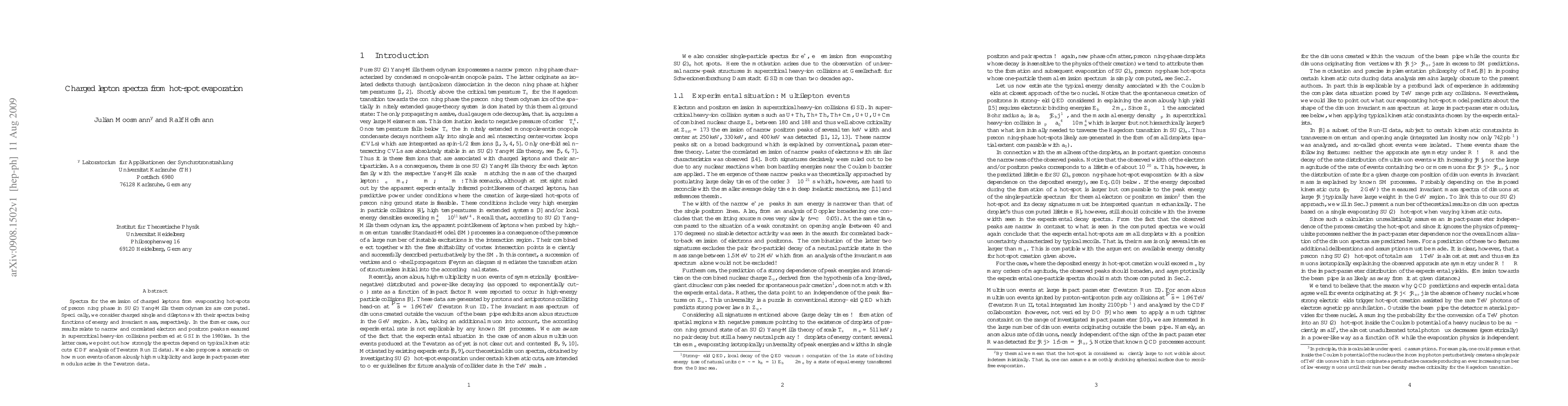 Spectra for the emission of charged leptons from evaporating hot-spots of preconfining phase in SU(2) Yang-Mills thermodynamics are computed. Specifically, we consider charged single and dileptons with their spectra being functions of energy and invariant mass, respectively. In the former case, our results relate to narrow and correlated electron and positron peaks measured in supercritical heavy-ion collisions performed at GSI in the 1980ies. In the latter case, we point out how strongly the spectra depend on typical kinematic cuts (CDF analysis of Tevatron Run II data). We also propose a scenario on how muon events of anomalously high multiplicity and large impact-parameter modulus arise in the Tevatron data.