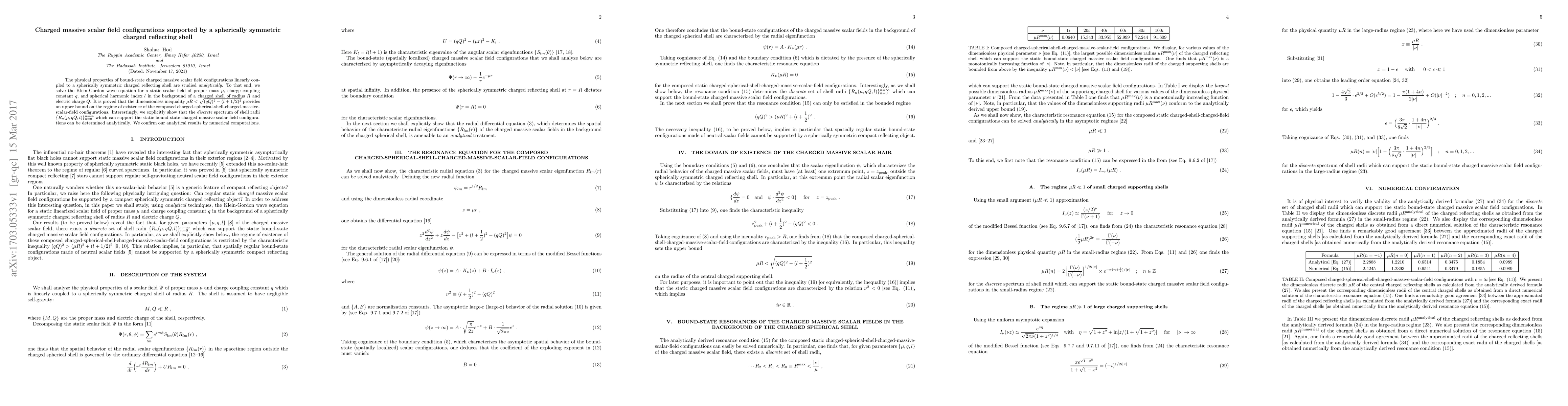 This paper analytically investigates the properties of charged massive scalar fields bound to spherically symmetric charged reflecting shells, solving the Klein-Gordon equation. It establishes an upper bound for the existence of these configurations and provides an analytical method for determining the discrete spectrum of shell radii that can support them, confirmed by numerical computations.