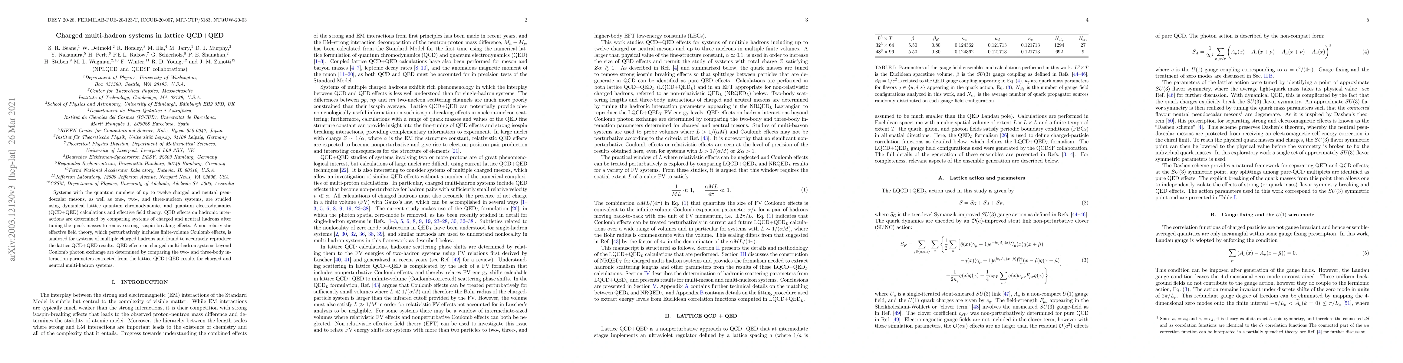 This paper investigates charged multi-hadron systems, including up to twelve charged and neutral pseudoscalar mesons and nucleons, using lattice QCD+QED and effective field theory. It determines QED effects on hadronic interactions by comparing charged and neutral systems, showing that a non-relativistic effective field theory accurately reproduces lattice QCD+QED results.
