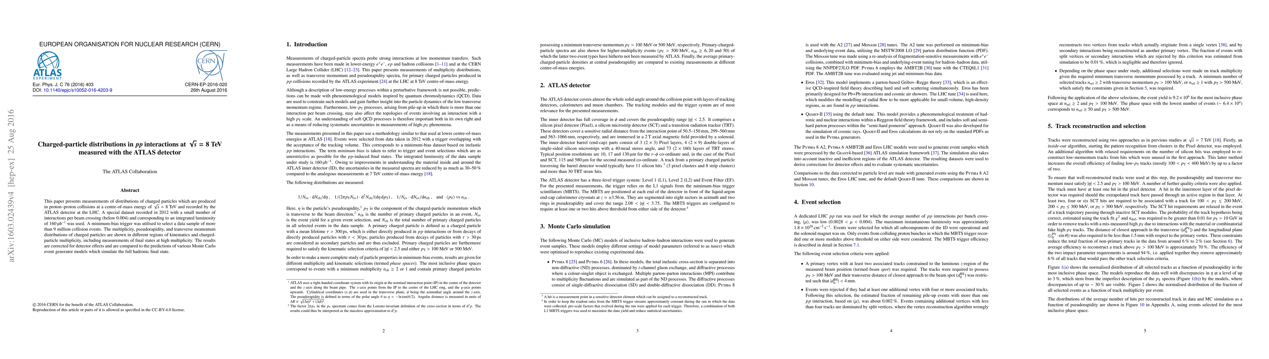 Researchers at ATLAS measured charged-particle distributions in proton-proton collisions at 8 TeV, focusing on high-multiplicity final states, with results compared to Monte Carlo event generator models.