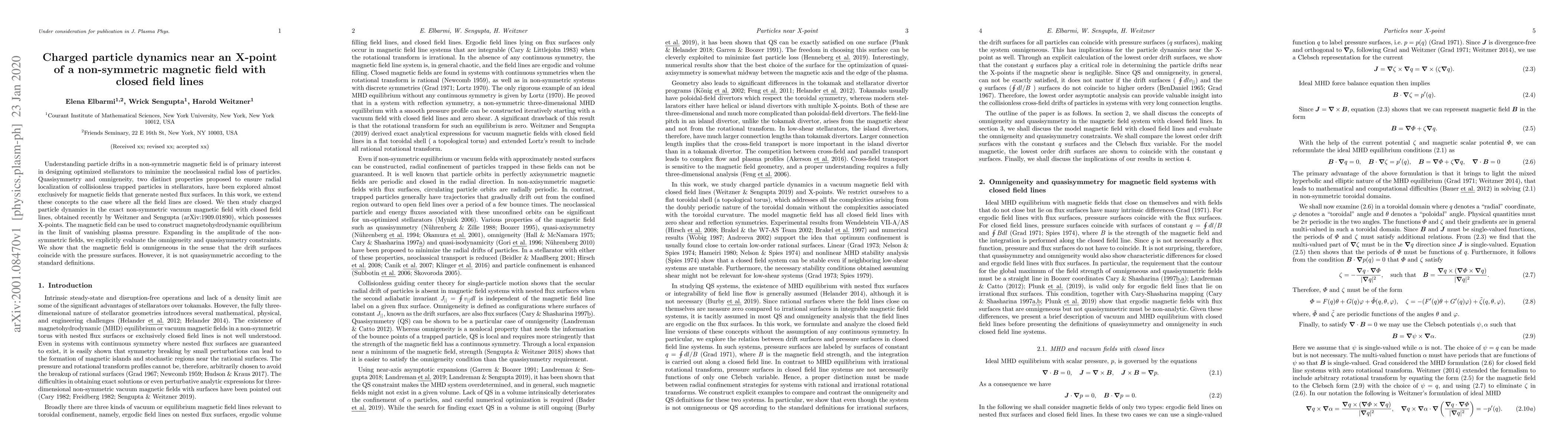 This research extends quasisymmetry and omnigeneity concepts to non-symmetric magnetic fields with closed field lines, focusing on an X-point field. It demonstrates that the field is omnigeneous, with drift surfaces coinciding with pressure surfaces, but not quasisymmetric. The study uses an explicitly evaluated expansion in non-symmetric field amplitudes.