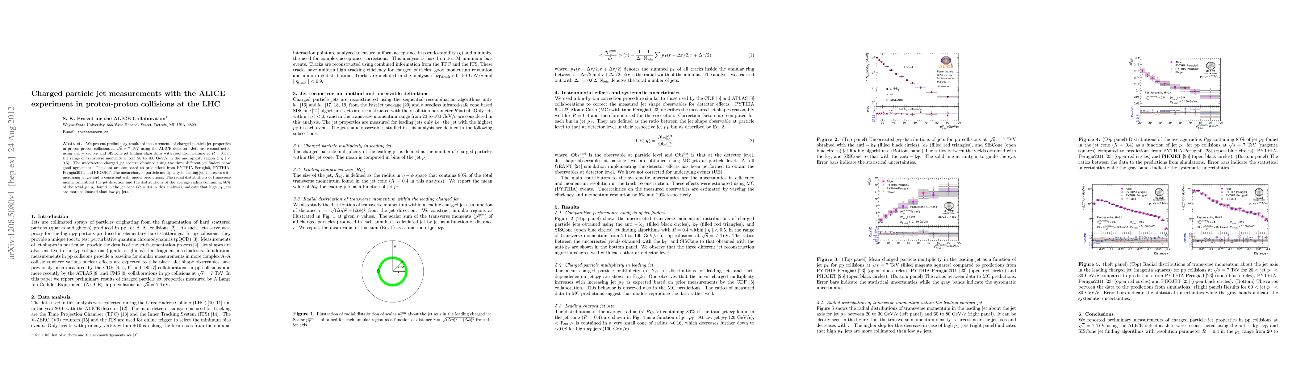 This paper presents preliminary results from the ALICE experiment on charged particle jet properties in proton-proton collisions at 7 TeV, showing good agreement among different jet reconstruction algorithms. The study finds that high transverse momentum jets are more collimated than low momentum jets, consistent with model predictions.