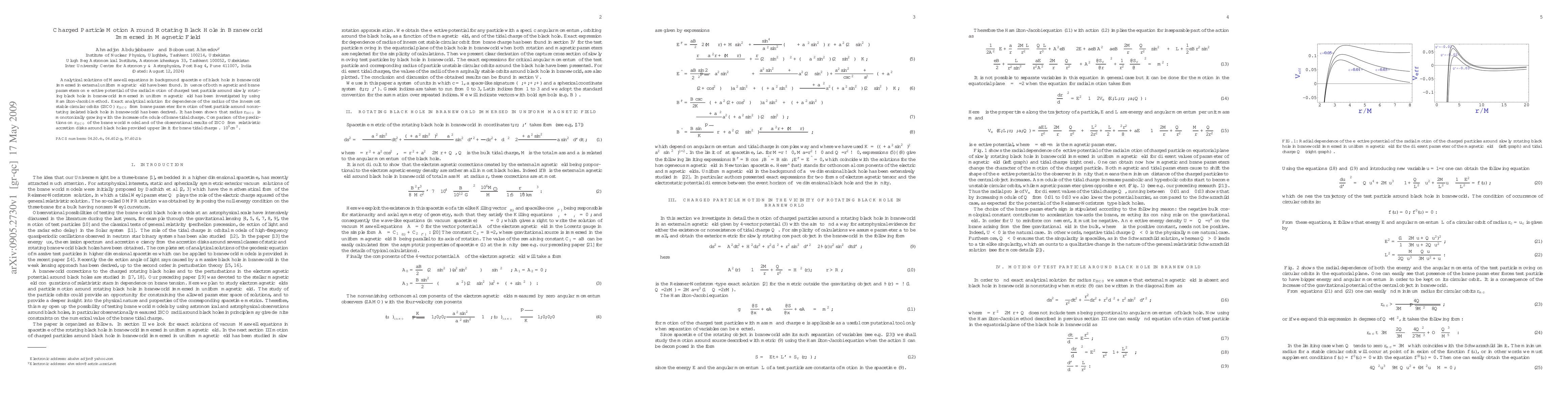 Analytical solutions of Maxwell equations in background spacetime of black hole in braneworld immersed in external uniform magnetic field have been found. Influence of both magnetic and brane parameters on effective potential of the radial motion of charged test particle around slowly rotating black hole in braneworld immersed in uniform magnetic field has been investigated by using Hamilton-Jacobi method. Exact analytical solution for dependence of the radius of the innermost stable circular orbits (ISCO) $r_{\rm ISCO}$ from brane parameter for motion of test particle around nonrotating isolated black hole in braneworld has been derived. It has been shown that radius $r_{\rm ISCO}$ is monotonically growing with the increase of module of brane tidal charge. Comparison of the predictions on $r_{\rm ISCO}$ of the brane world model and of the observational results of ISCO from relativistic accretion disks around black holes provided upper limit for brane tidal charge $\lesssim 10^9 {\rm cm}^2$.