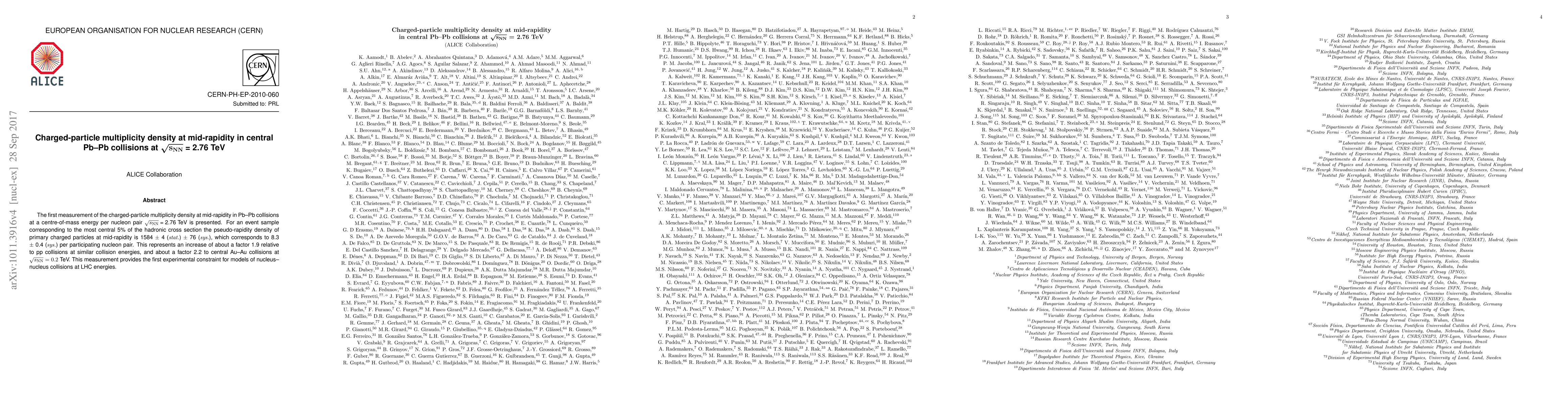 This paper reports the first measurement of charged-particle multiplicity density in central Pb-Pb collisions at $\sqrt{s_{\rm NN}}$ = 2.76 TeV, finding a density of 1584 $\pm$ 4 (stat) $\pm$ 76 (sys.). This result shows a significant increase relative to pp and Au-Au collisions, providing crucial data for modeling nucleus-nucleus interactions at LHC energies.