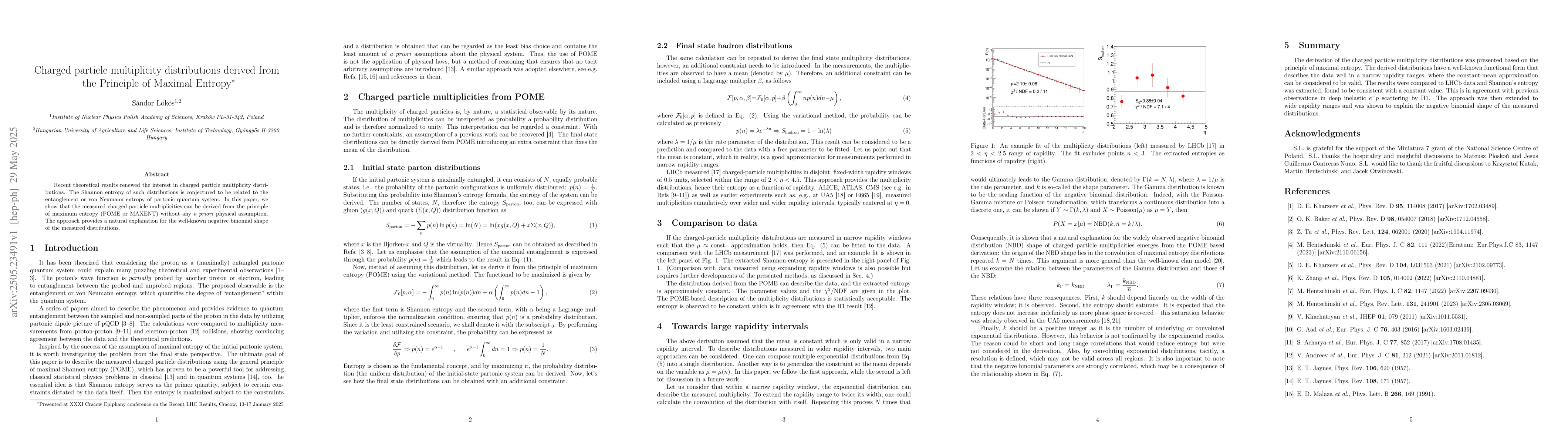 The research derives charged particle multiplicity distributions using the Principle of Maximal Entropy (POME) without prior physical assumptions. It shows that the measured distributions follow a negative binomial shape naturally.