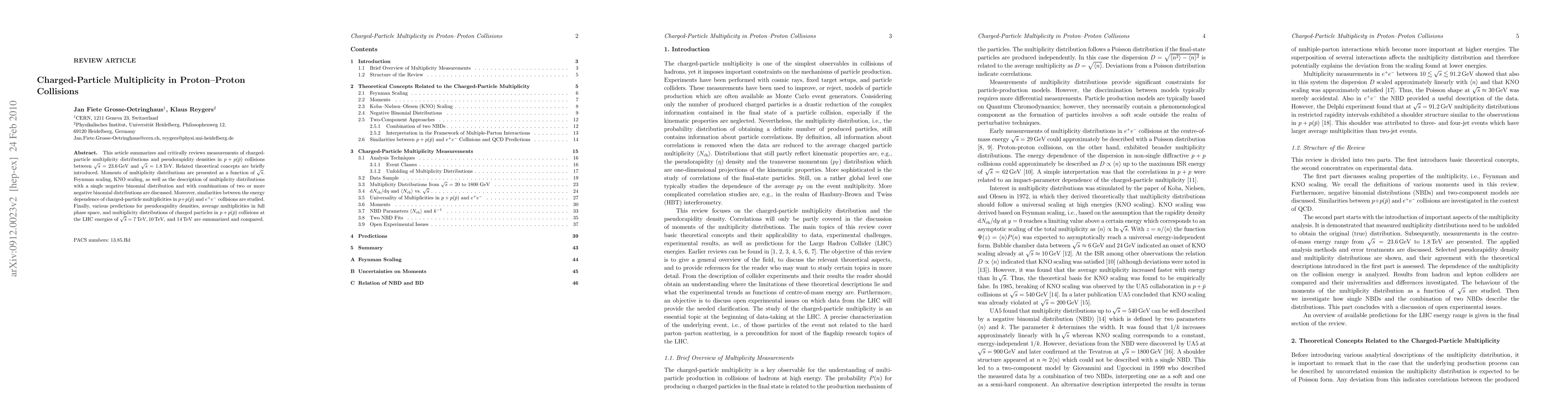 This paper reviews measurements of charged-particle multiplicity in proton-proton collisions across a range of energies, discussing theoretical scaling laws and comparing results with electron-positron collisions. It also summarizes predictions for future LHC energies.