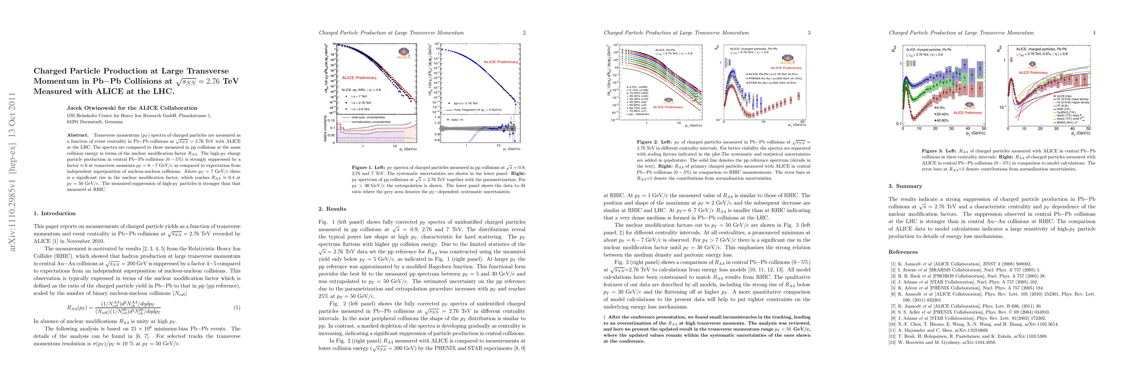 This paper reports on the transverse momentum spectra of charged particles in Pb-Pb collisions at $\sqrt{s_{NN}}=2.76$ TeV, revealing strong suppression of high-$p_{T}$ particles in central collisions, with a significant rise in the nuclear modification factor above $p_{T}=7$ GeV/c. The suppression is more pronounced than observed at RHIC energies.