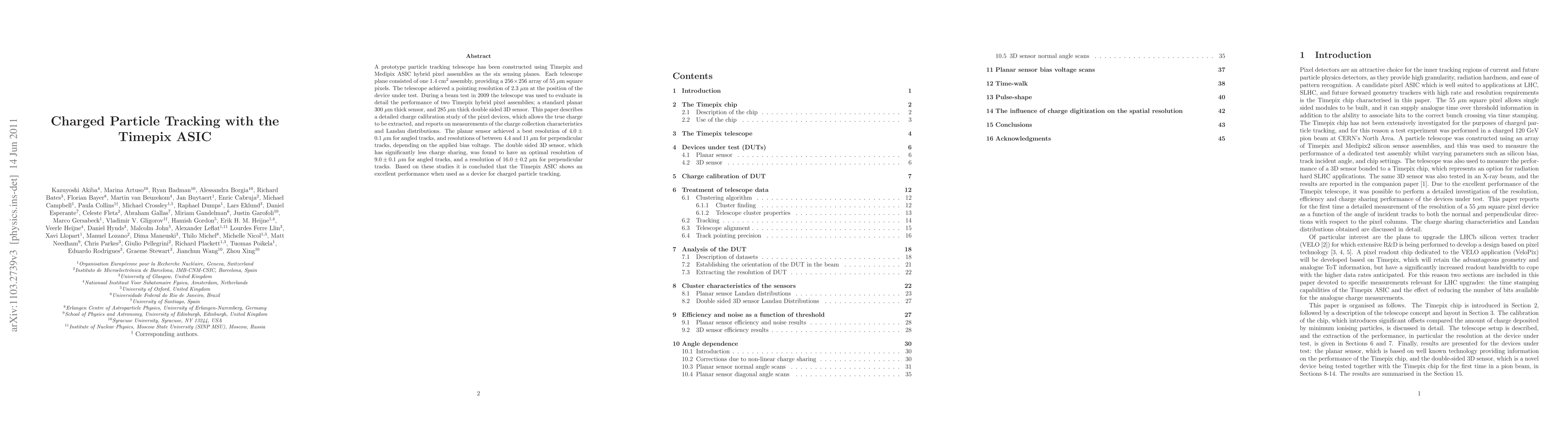 This paper details a prototype particle tracking telescope using Timepix ASICs, achieving a 2.3 micron pointing resolution. It reports on charge calibration and performance of planar and 3D sensors, finding optimal resolutions of 4.0-11 micron for planar and 9.0-16 micron for 3D sensors, concluding Timepix ASICs are highly effective for charged particle tracking.