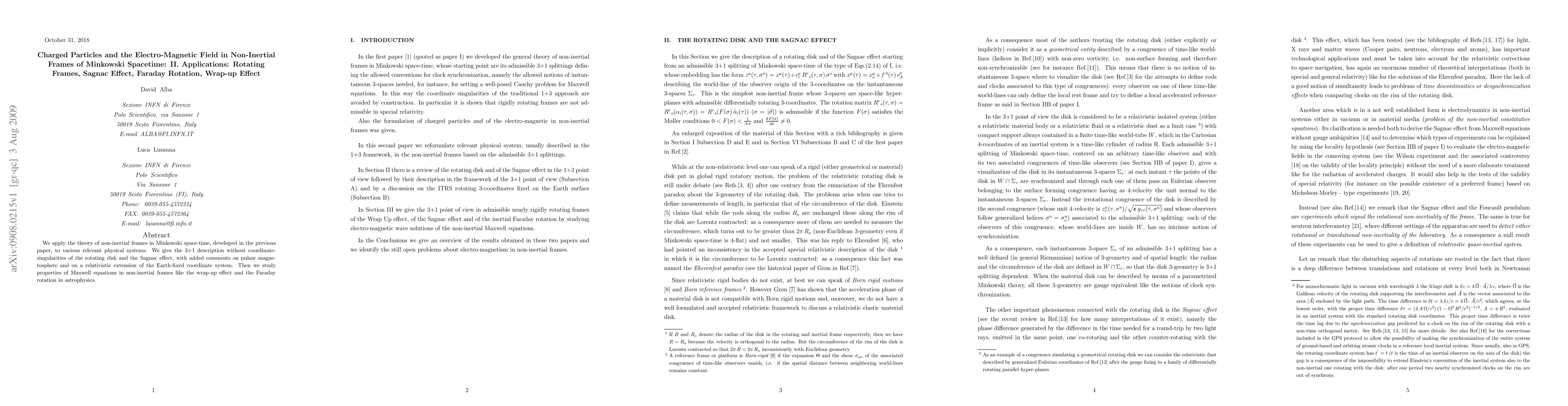 This paper extends the theory of charged particles and electro-magnetic fields in non-inertial frames of Minkowski spacetime to rotating systems, elucidating the Sagnac effect and Faraday rotation without coordinate singularities. It also discusses the wrap-up effect and applications in pulsar magnetospheres and relativistic Earth-fixed coordinates.