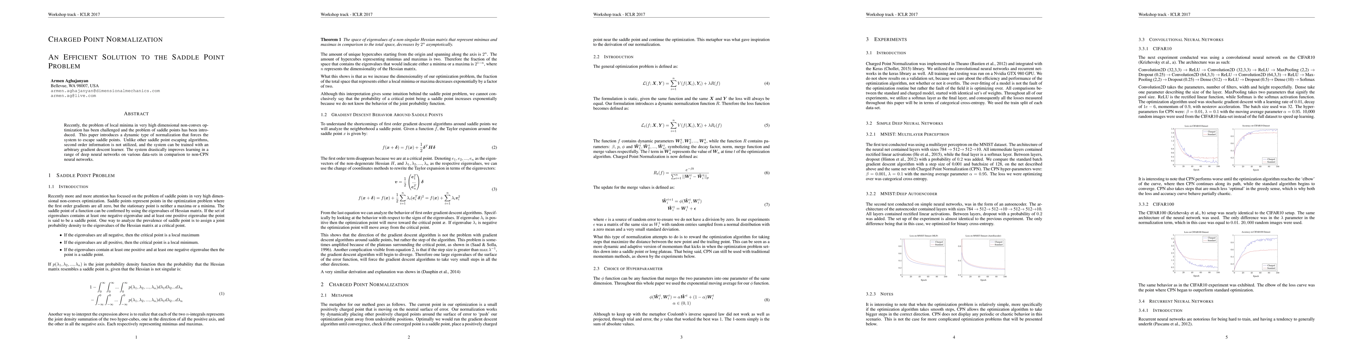This paper proposes Charged Point Normalization (CPN) as an efficient method to escape saddle points in high-dimensional non-convex optimization, without requiring second-order information, and demonstrates its effectiveness in improving learning across various deep neural networks.