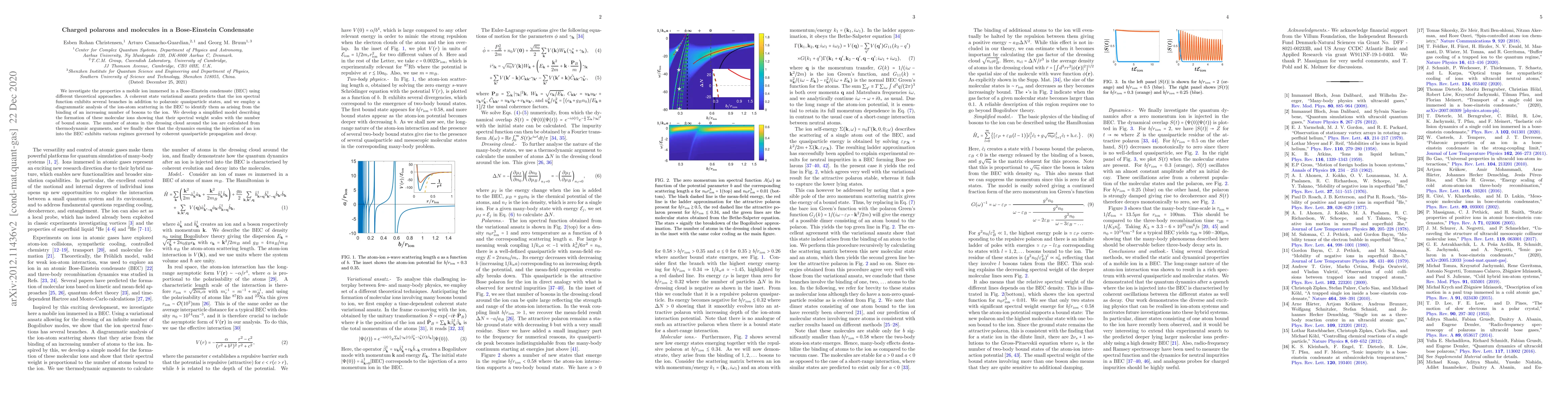 This paper explores the behavior of a charged ion within a Bose-Einstein condensate (BEC), revealing multiple spectral branches arising from the ion's interaction with the surrounding bosons, which form molecular ions. The dynamics following the ion's introduction into the BEC show distinct regimes dictated by coherent quasiparticle propagation and decay.