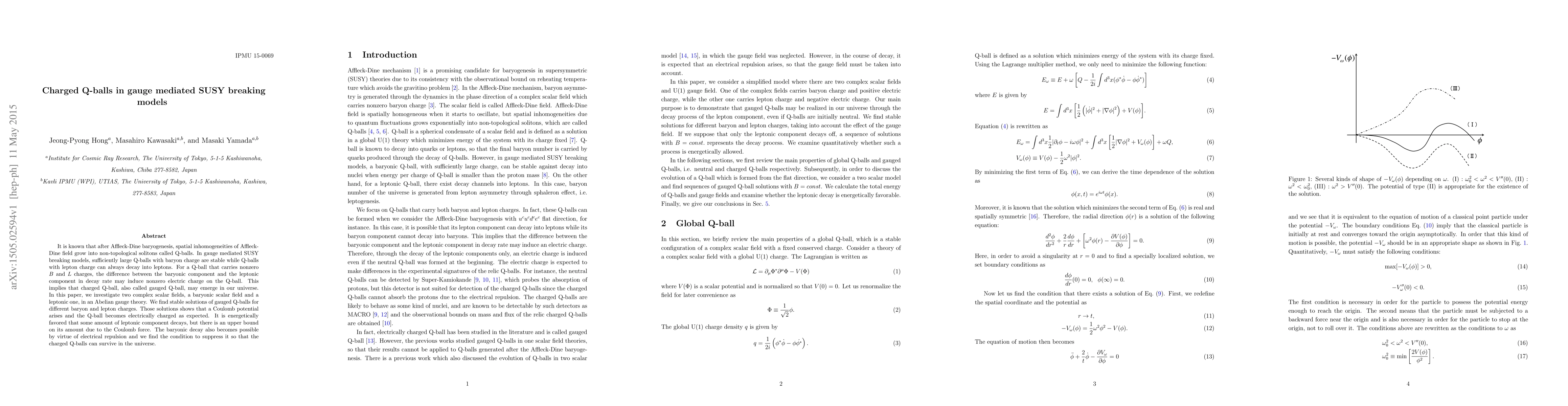It is known that after Affleck-Dine baryogenesis, spatial inhomogeneities of Affleck-Dine field grow into non-topological solitons called Q-balls. In gauge mediated SUSY breaking models, sufficiently large Q-balls with baryon charge are stable while Q-balls with lepton charge can always decay into leptons. For a Q-ball that carries nonzero $B$ and $L$ charges, the difference between the baryonic component and the leptonic component in decay rate may induce nonzero electric charge on the Q-ball. This implies that charged Q-ball, also called gauged Q-ball, may emerge in our universe. In this paper, we investigate two complex scalar fields, a baryonic scalar field and a leptonic one, in an Abelian gauge theory. We find stable solutions of gauged Q-balls for different baryon and lepton charges. Those solutions shows that a Coulomb potential arises and the Q-ball becomes electrically charged as expected. It is energetically favored that some amount of leptonic component decays, but there is an upper bound on its amount due to the Coulomb force. The baryonic decay also becomes possible by virtue of electrical repulsion and we find the condition to suppress it so that the charged Q-balls can survive in the universe.