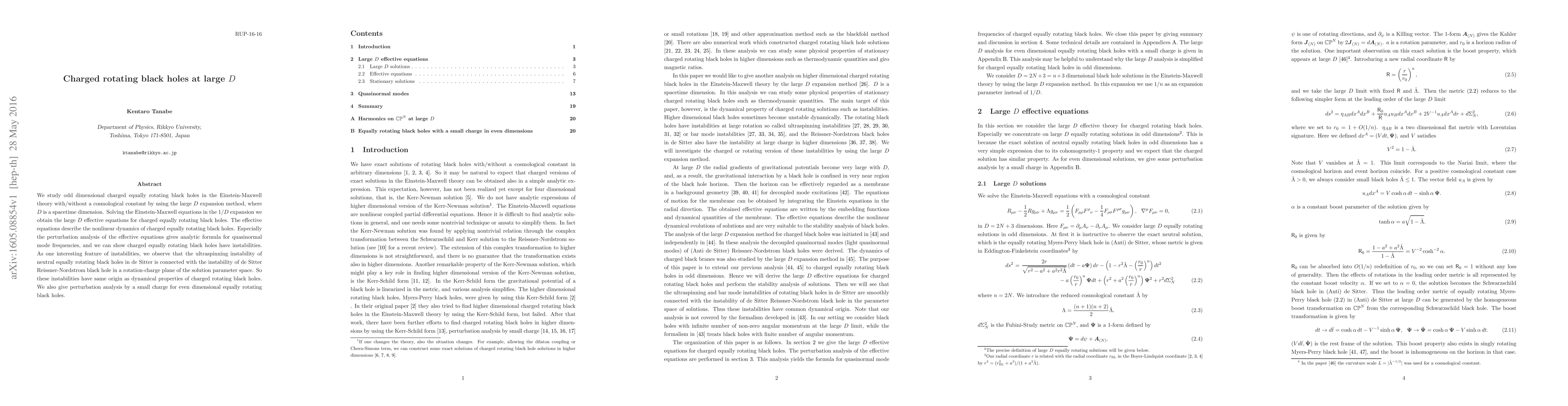 This research investigates odd-dimensional charged rotating black holes using the large D expansion method in the Einstein-Maxwell theory, revealing nonlinear dynamics and instabilities through perturbation analysis. It connects the ultraspinning instability of neutral black holes to the instability of charged black holes, showing shared dynamical properties.