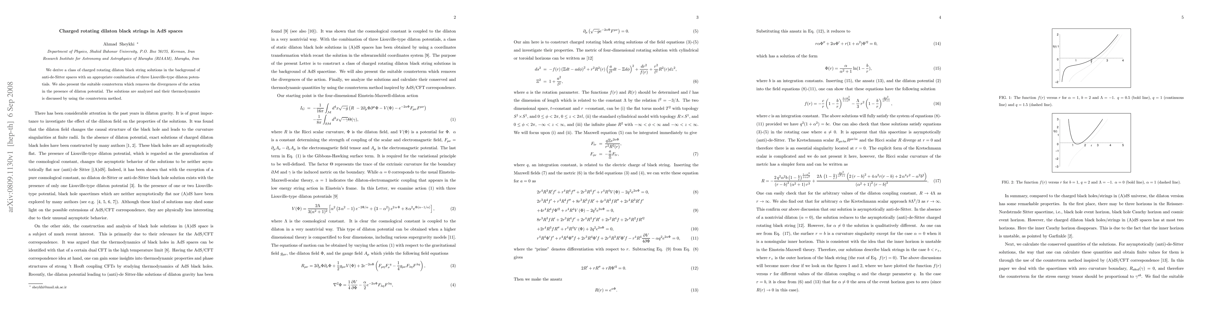 This paper derives charged rotating dilaton black string solutions in anti-de Sitter spaces using Liouville-type dilaton potentials and presents a counterterm method to handle divergences. It analyzes these solutions and discusses their thermodynamic properties.