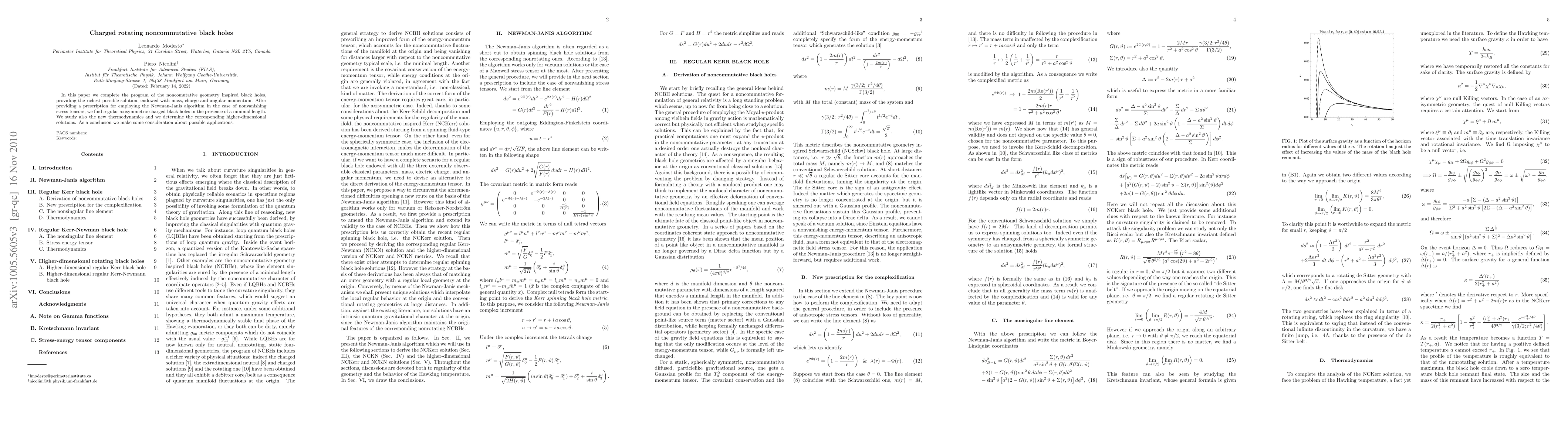 In this paper we complete the program of the noncomutative geometry inspired black holes, providing the richest possible solution, endowed with mass, charge and angular momentum. After providing a prescription for employing the Newman-Janis algorithm in the case of nonvanishing stress tensors, we find regular axisymmetric charged black holes in the presence of a minimal length. We study also the new thermodynamics and we determine the corresponding higher-dimensional solutions. As a conclusion we make some consideration about possible applications.