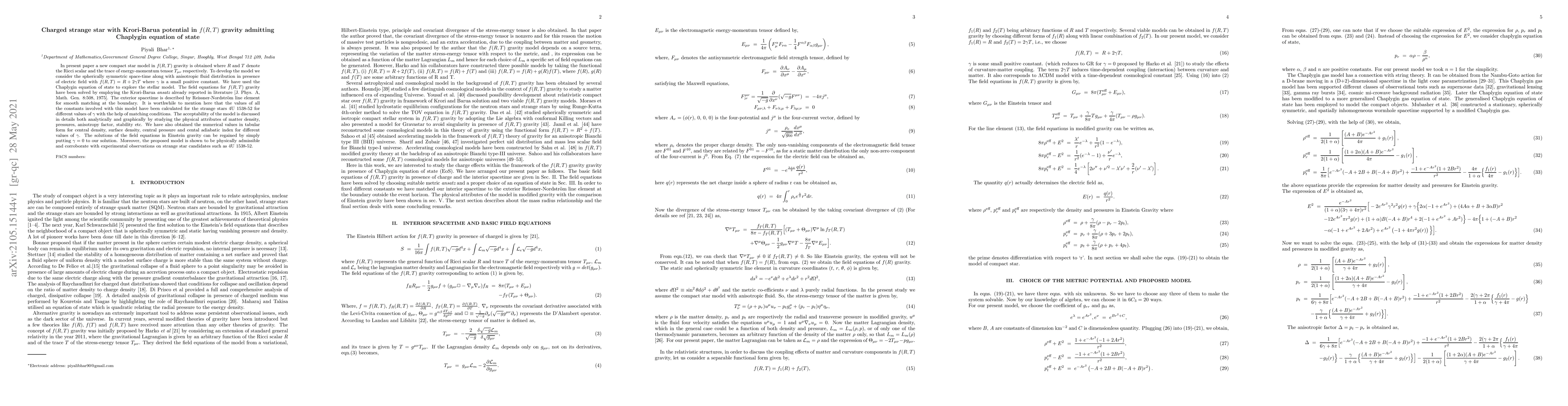 This paper develops a new compact star model in $f(R,T)$ gravity using the Krori-Barua potential and the Chaplygin equation of state, exploring the stellar structure with an electric field. The model's physical attributes and stability are analyzed, and it is shown to be consistent with observations of the strange star 4U 1538-52.