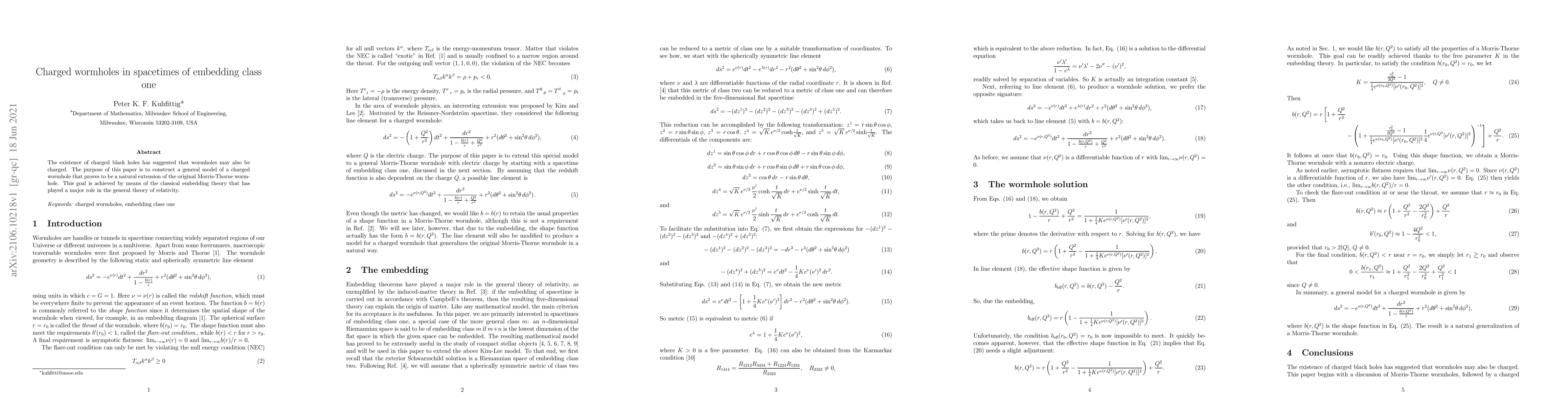 This paper constructs a general model of a charged wormhole extending the Morris-Thorne model using classical embedding theory, suggesting that charged black holes imply the possibility of similarly charged wormholes.