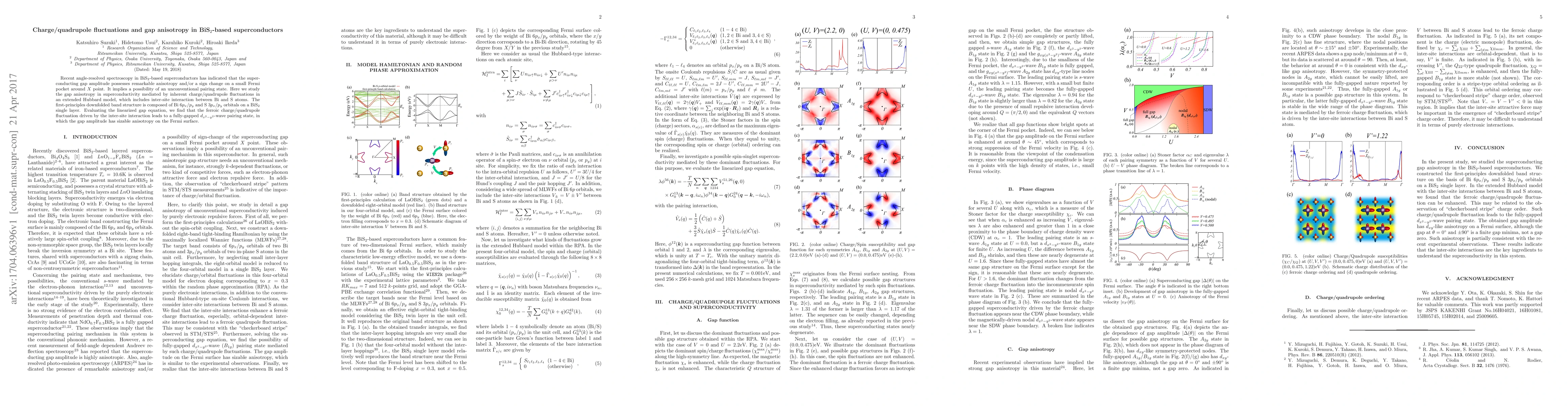 This paper explores the role of charge/quadrupole fluctuations in BiS$_2$-based superconductors, revealing significant gap anisotropy and unconventional pairing states. Using an extended Hubbard model, it demonstrates that these fluctuations induce a $d_{x^2-y^2}$-wave pairing state with notable anisotropy on the Fermi surface.