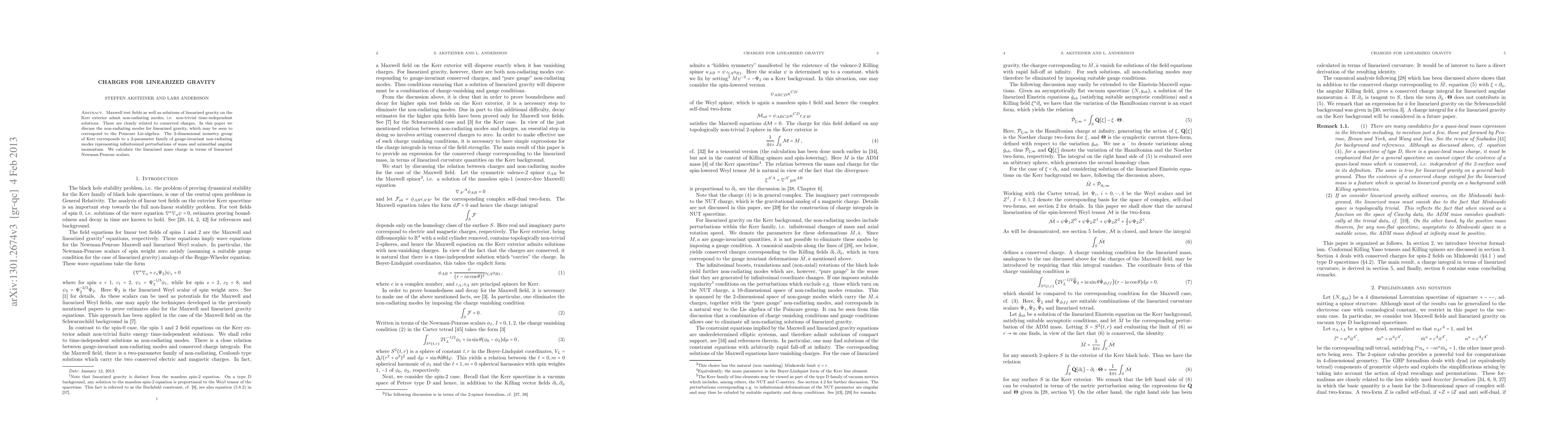 Maxwell test fields as well as solutions of linearized gravity on the Kerr exterior admit non-radiating modes, i.e. non-trivial time-independent solutions. These are closely related to conserved charges. In this paper we discuss the non-radiating modes for linearized gravity, which may be seen to correspond to the Poincare Lie-algebra. The 2-dimensional isometry group of Kerr corresponds to a 2-parameter family of gauge-invariant non-radiating modes representing infinitesimal perturbations of mass and azimuthal angular momentum. We calculate the linearized mass charge in terms of linearized Newman-Penrose scalars.