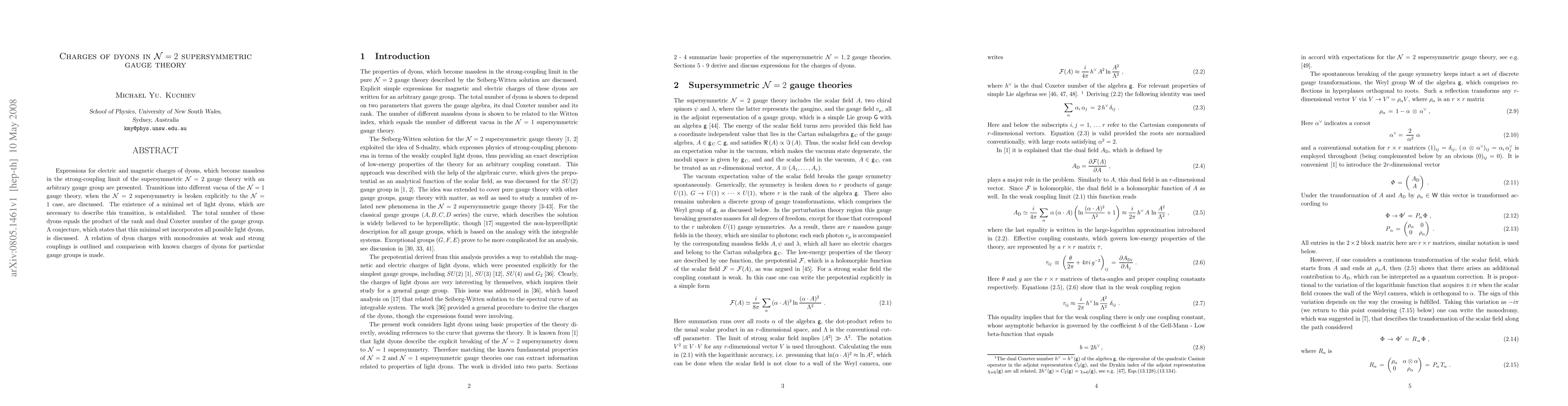 This paper presents expressions for the electric and magnetic charges of dyons in N=2 supersymmetric gauge theory, showing that these dyons become massless in the strong-coupling limit. It discusses transitions into different vacua when N=2 supersymmetry breaks to N=1 and proposes a minimal set of light dyons necessary for this transition, with their number equal to the product of the rank and dual Coxeter number of the gauge group.