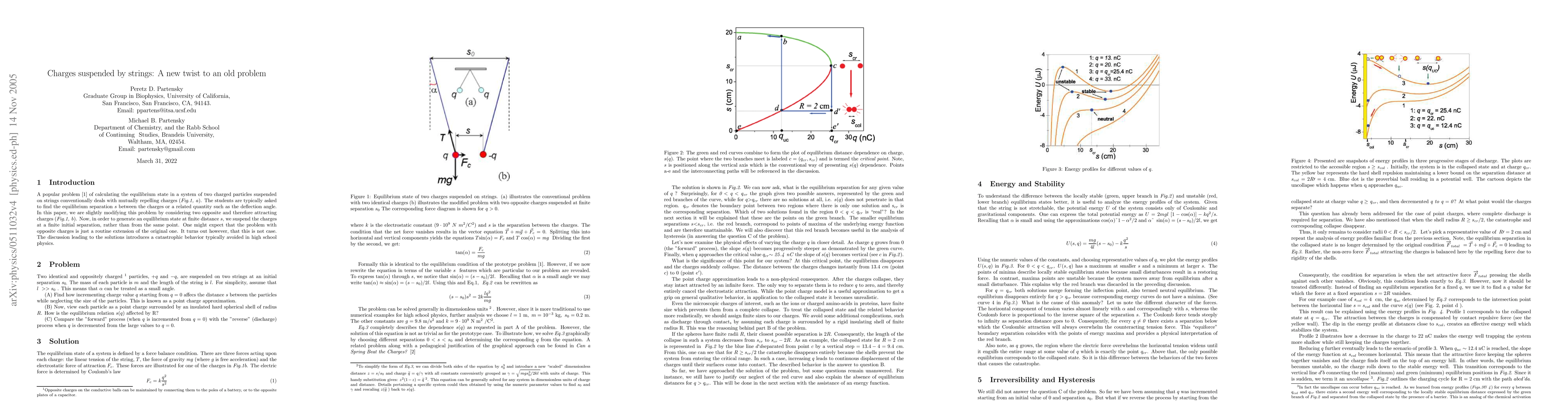 A popular problem asks for the equilibrium separation between two identical (mutually repelling) charges suspended by strings fastened to a common point. We slightly modify this problem by considering two opposite (mutually attracting) charges and adding a finite separation between the suspension points. The discussion leading to the solution introduces important physical phenomena including "catastrophic" behavior and hysterisis.