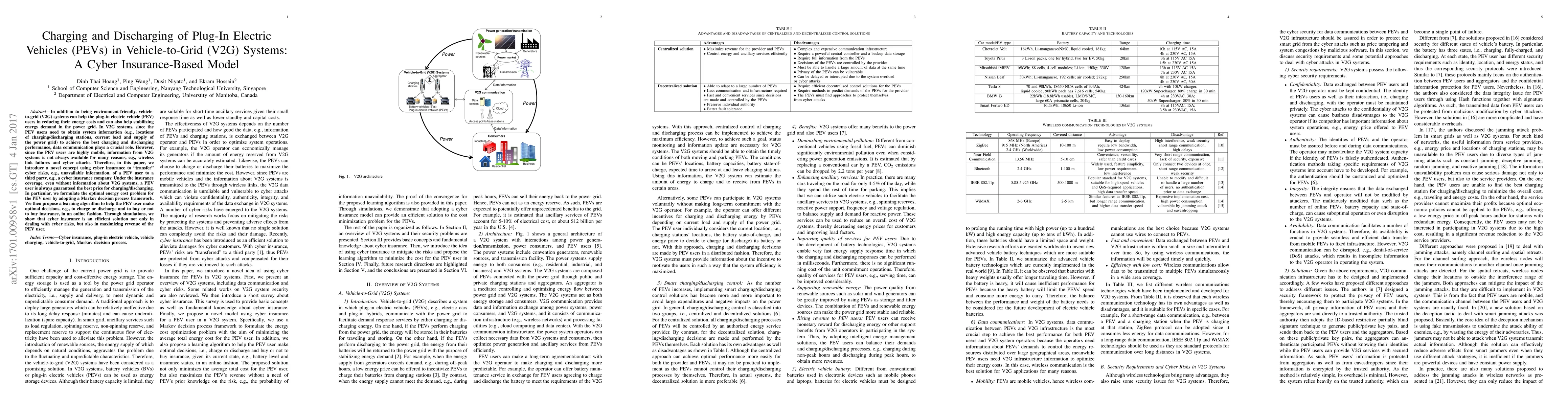 This paper proposes a cyber insurance-based model to manage charging and discharging of plug-in electric vehicles (PEVs) in vehicle-to-grid (V2G) systems, ensuring optimal energy cost despite potential cyber risks. It uses a Markov decision process to formulate the optimal energy cost problem and a learning algorithm for online decision-making, demonstrating that cyber insurance can effectively mitigate risks and maximize PEV user revenue.