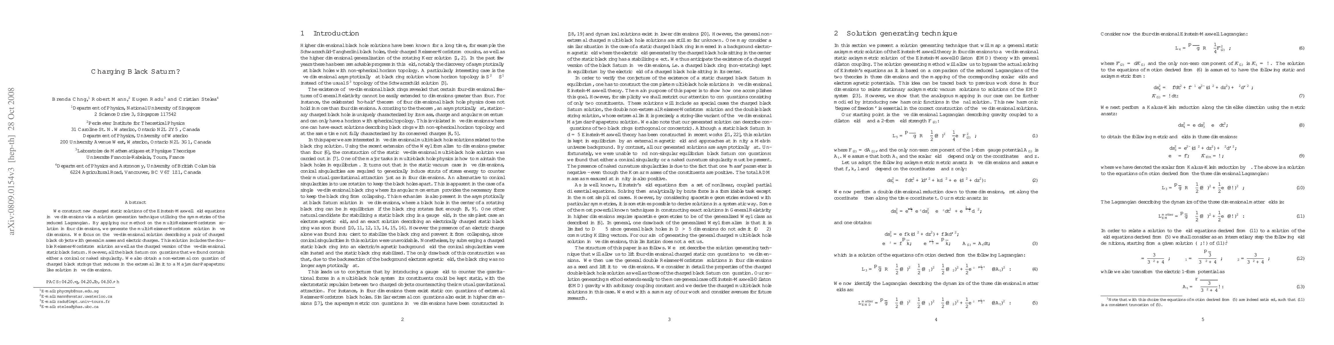 This paper constructs new charged static solutions in five-dimensional Einstein-Maxwell theory, generating multi-Reissner-Nordstrom solutions and a charged black Saturn. However, all configurations exhibit either a conical or naked singularity, and a non-extremal charged black string is also presented.
