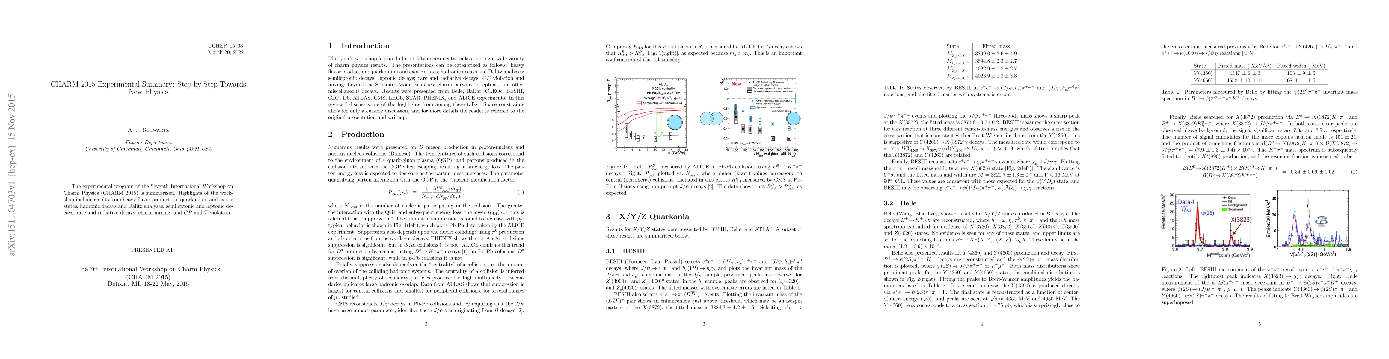 The CHARM 2015 workshop summarized key findings from experiments on charm particles, including rare decays, quarkonium states, and CP violation, shedding light on new physics beyond the Standard Model.